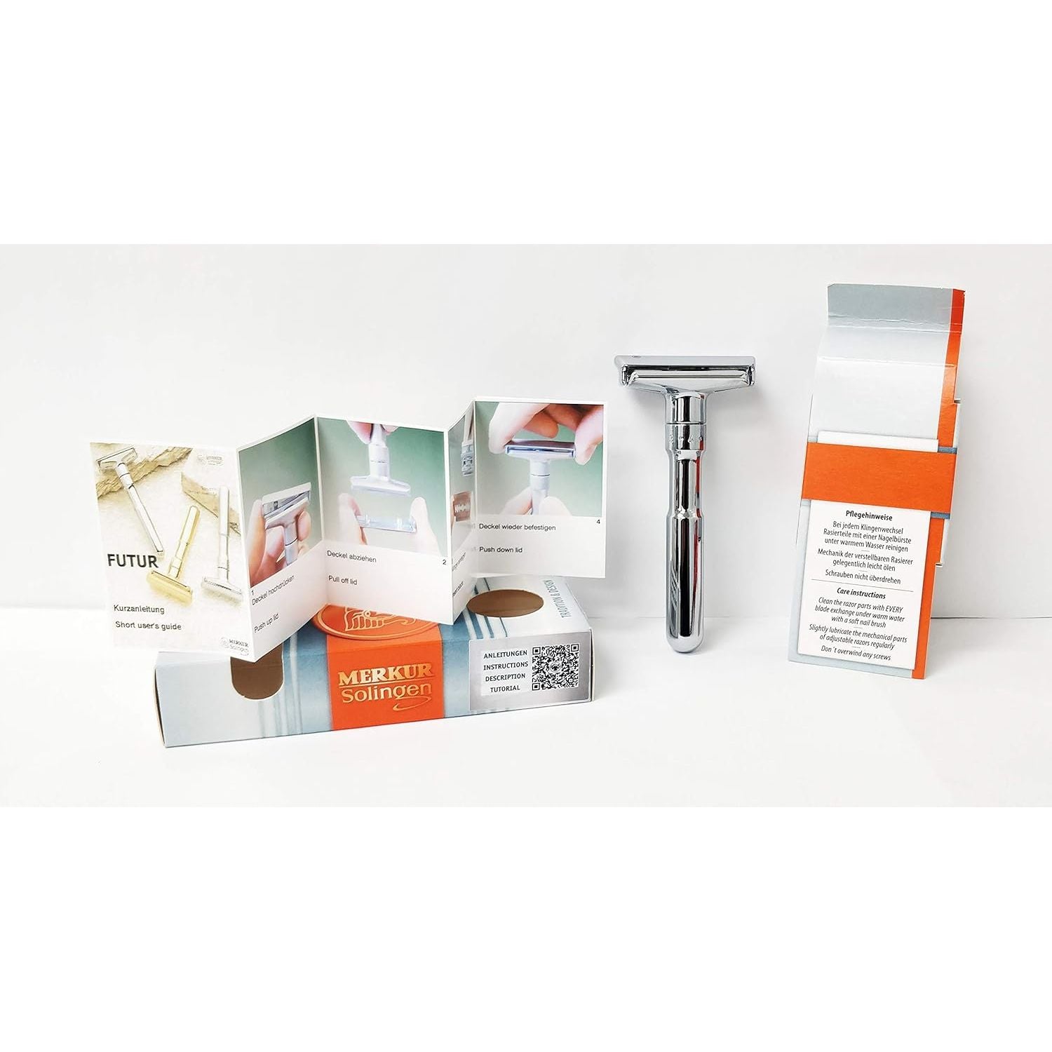 Product Description Merkur Razor Future Chrome-Plat. Brand Story Solingen based MERKUR Stahlwaren GmbH & Co. KG is a leading worldwide manufacturer of quality shaving equipment since 1896. MERKUR produces high quality safety razors with double-edge blades made in Germany.