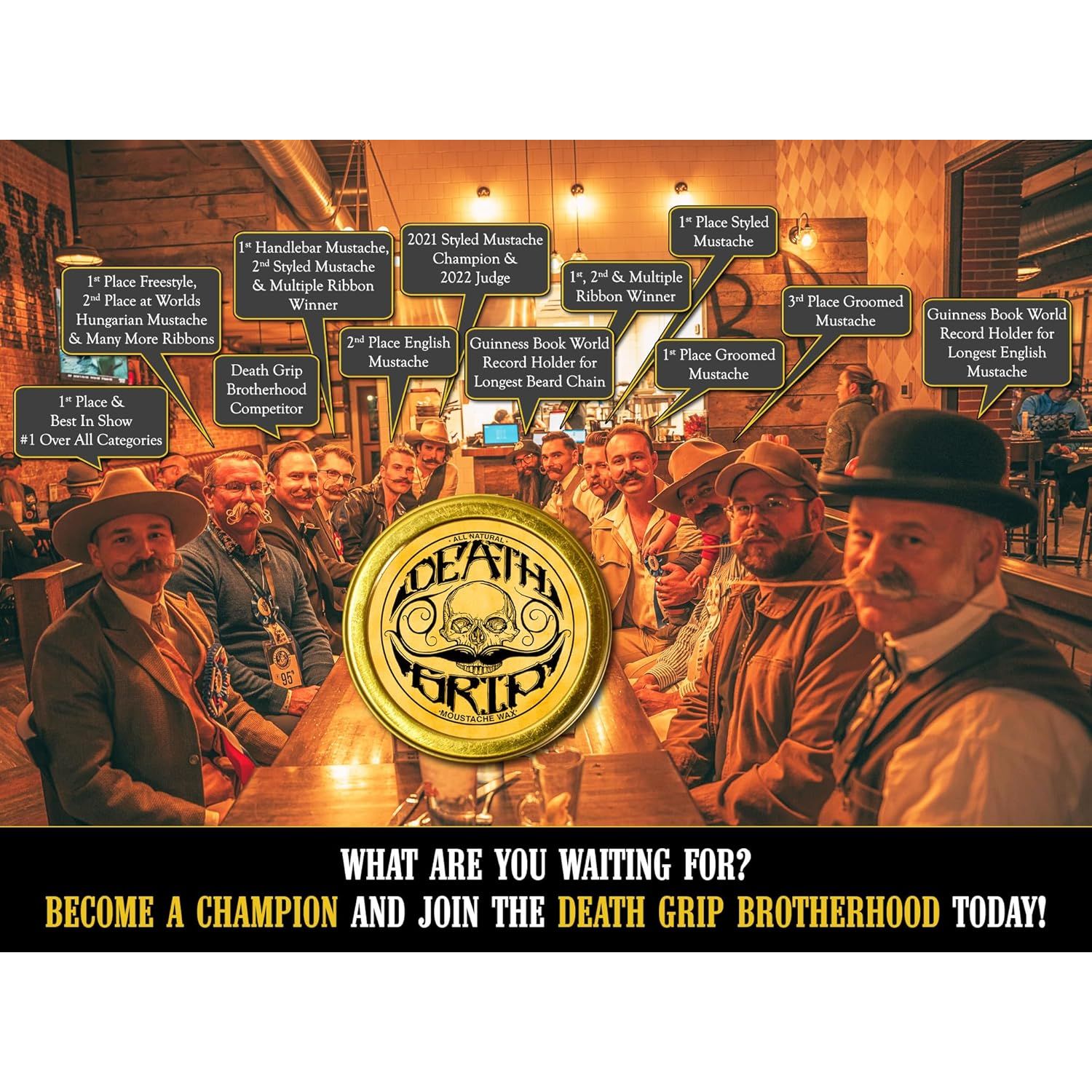- DEATH GRIP MUSTACHE WAX GUARANTEE If you are not satisfied for any reason we will refund your money