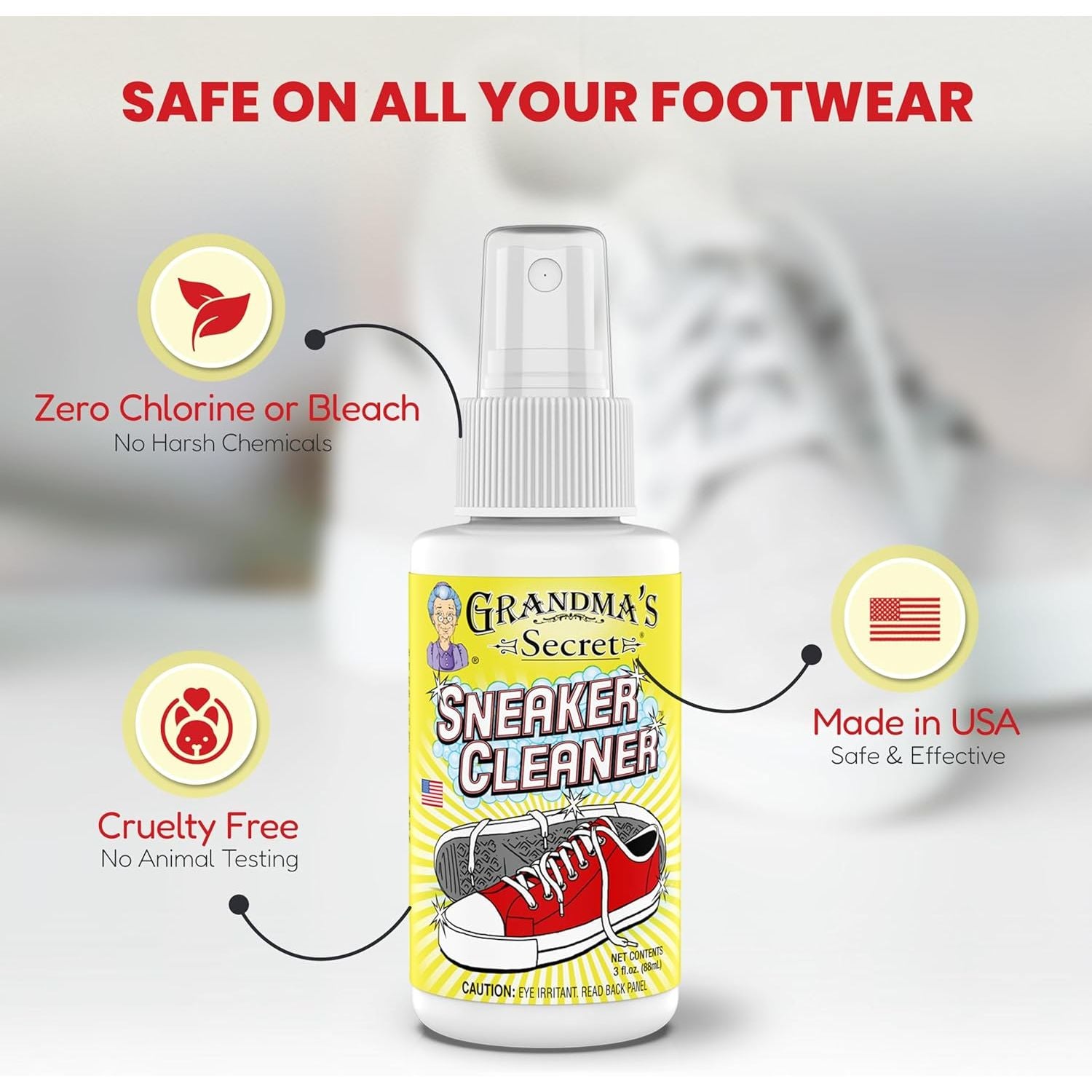 - Grandma's Secret Sneaker Cleaner - for Rubber, Canvas, Leather, Stain Remover Spray Removes Dirt, Grime, Grass - Cleaner for Outdoor Shoes, Slippers, Moccasins - 16oz & 3oz Combo