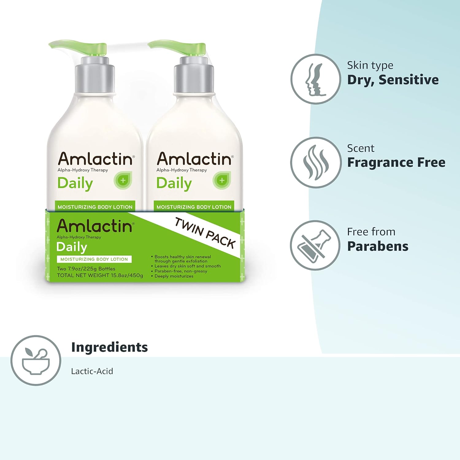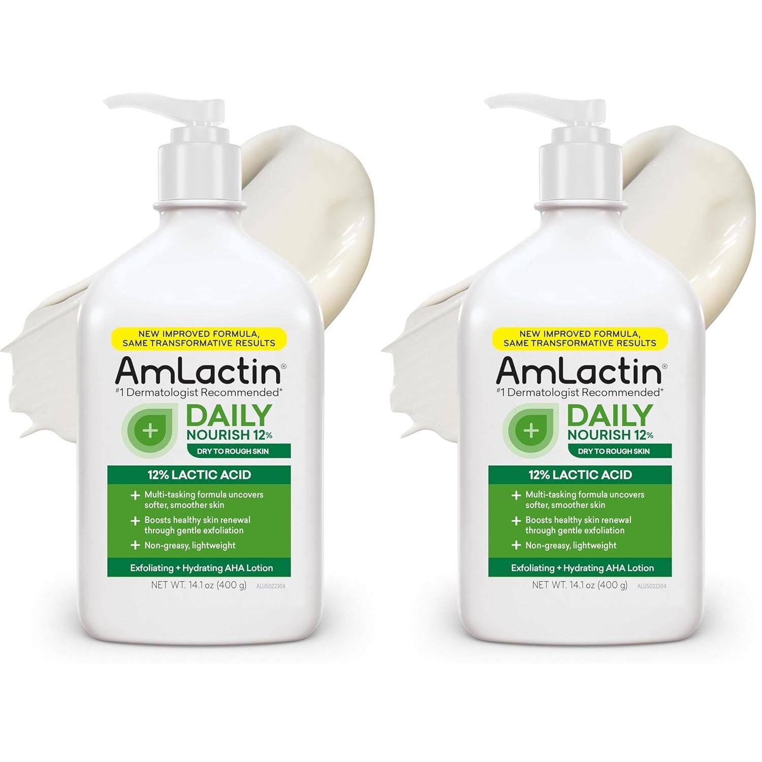 AmLactin Daily Moisturizing Lotion for Dry Skin, 7.9 oz Pump Bottles (Twin Pack), 2-in-1 Exfoliator-Body Lotion with 12% Lactic Acid, Dermatologist-Recommended (Packaging May Vary)