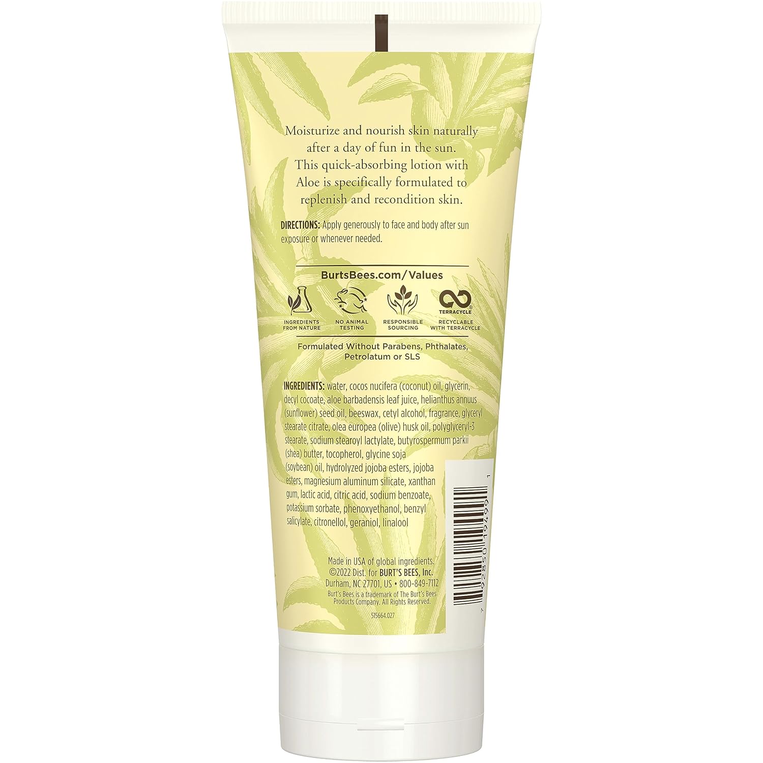 - NATURAL LOTION: Let Burt’s Bees aloe and coconut oil after sun lotion soothe skin with a naturally moisturizing and nourishing blend of ingredients