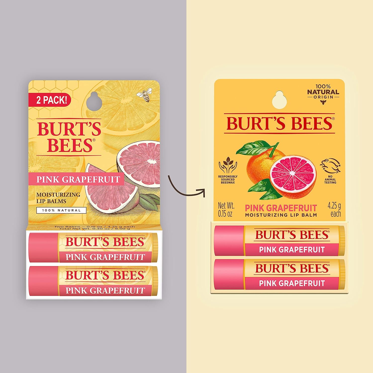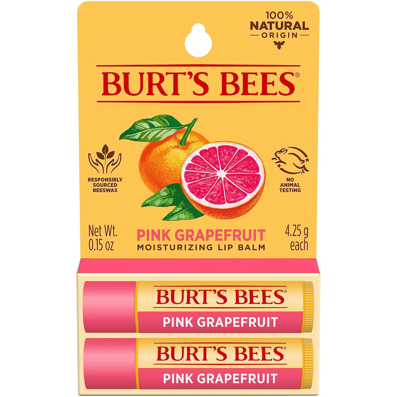 - FLAVORFUL LIP BALM: Two 0.15 oz. lip balm tubes of Burt’s Bees Pink Grapefruit Lip Balm to moisturize and soften your lips