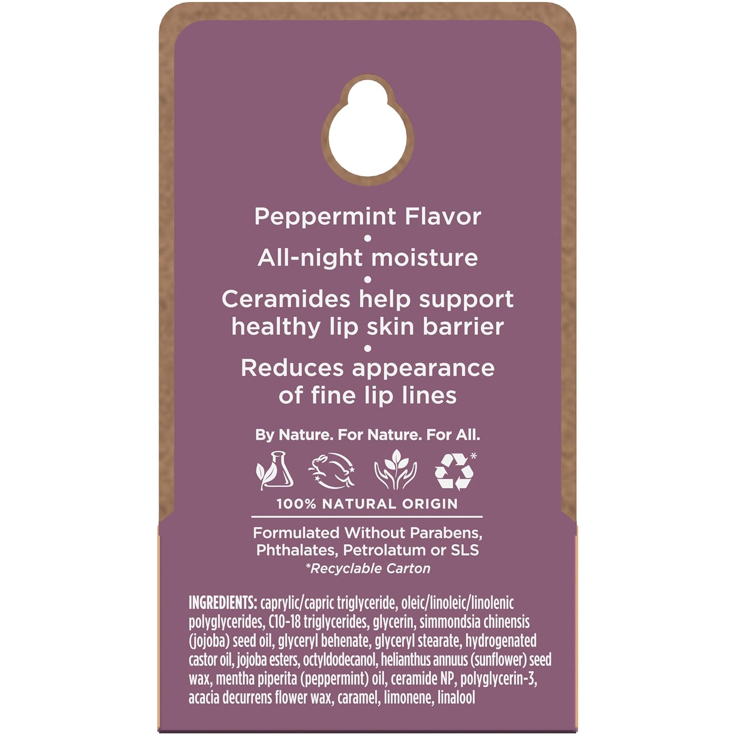 Wake up to soft, healthier-looking lips that feel smooth and soothed when you use Burts Bees Overnight Lip Treatment. This overnight lip therapy forms a layer that helps hydrate your lips for up to 8 hours as you sleep to leave lips feeling softer, fuller and smoother. Infused with essential ceramides, this lip therapy helps maintain your lips' natural moisture barrier, while peppermint adds a refreshing tingle. This treatment even helps reduce the look of fine lines on and around your lips, leaving them ready for an even application of lip color or lip balm. Simply apply a generous amount of this lip treatment to lips at bedtime. Formulated without parabens, phthalates, petrolatum or SLS, this lip care treatment is 100% natural origin to revitalize and beautify lips with clean ingredients. Playing by natures rules since 1984, Burts Bees uses ingredients from nature to nourish and revitalize your skin and lips, making products that have become a staple of your household.