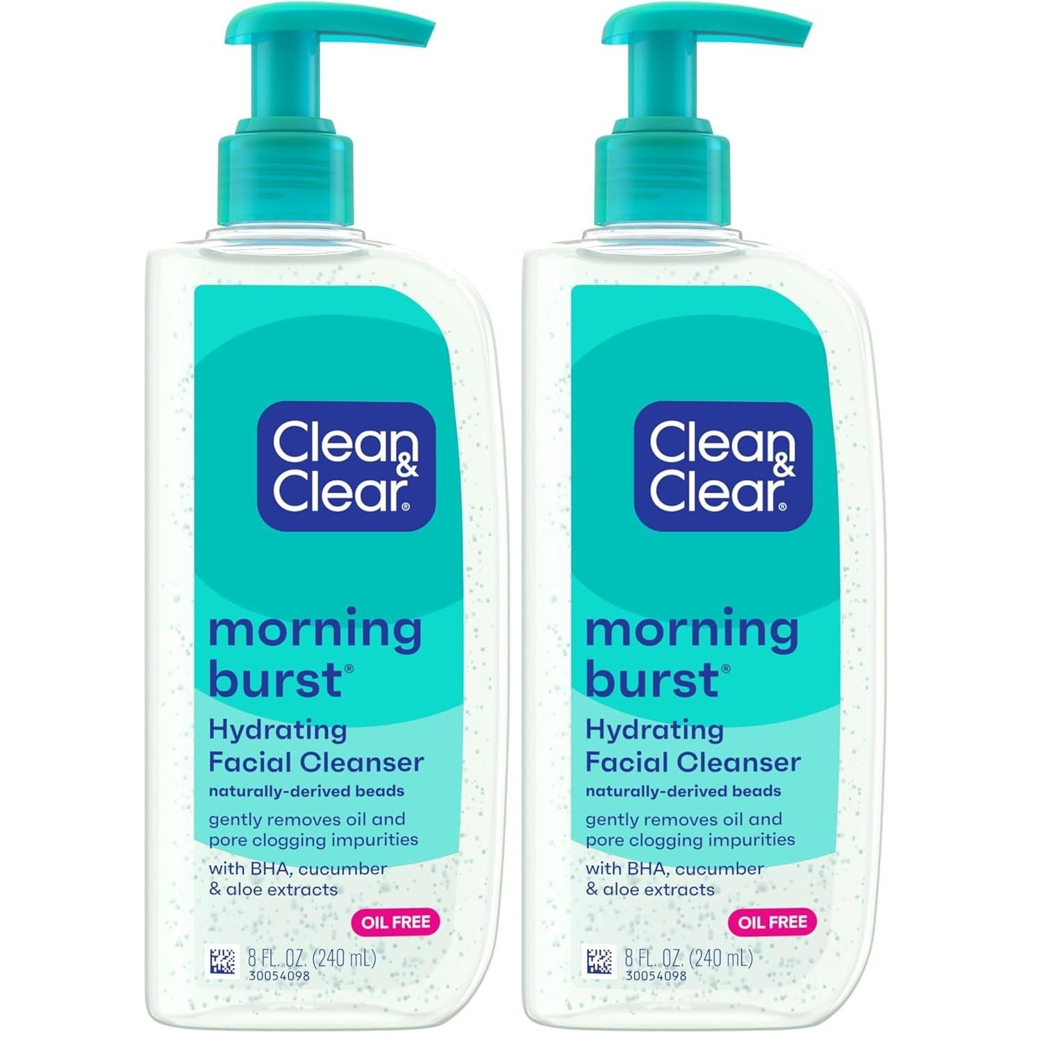 - 8-fluid ounces of Clean & Clear Morning Burst Oil-Free Hydrating Facial Cleanser with BHA, cucumber & aloe extract gently cleanses while removing oil and washing away pore clogging impurities
