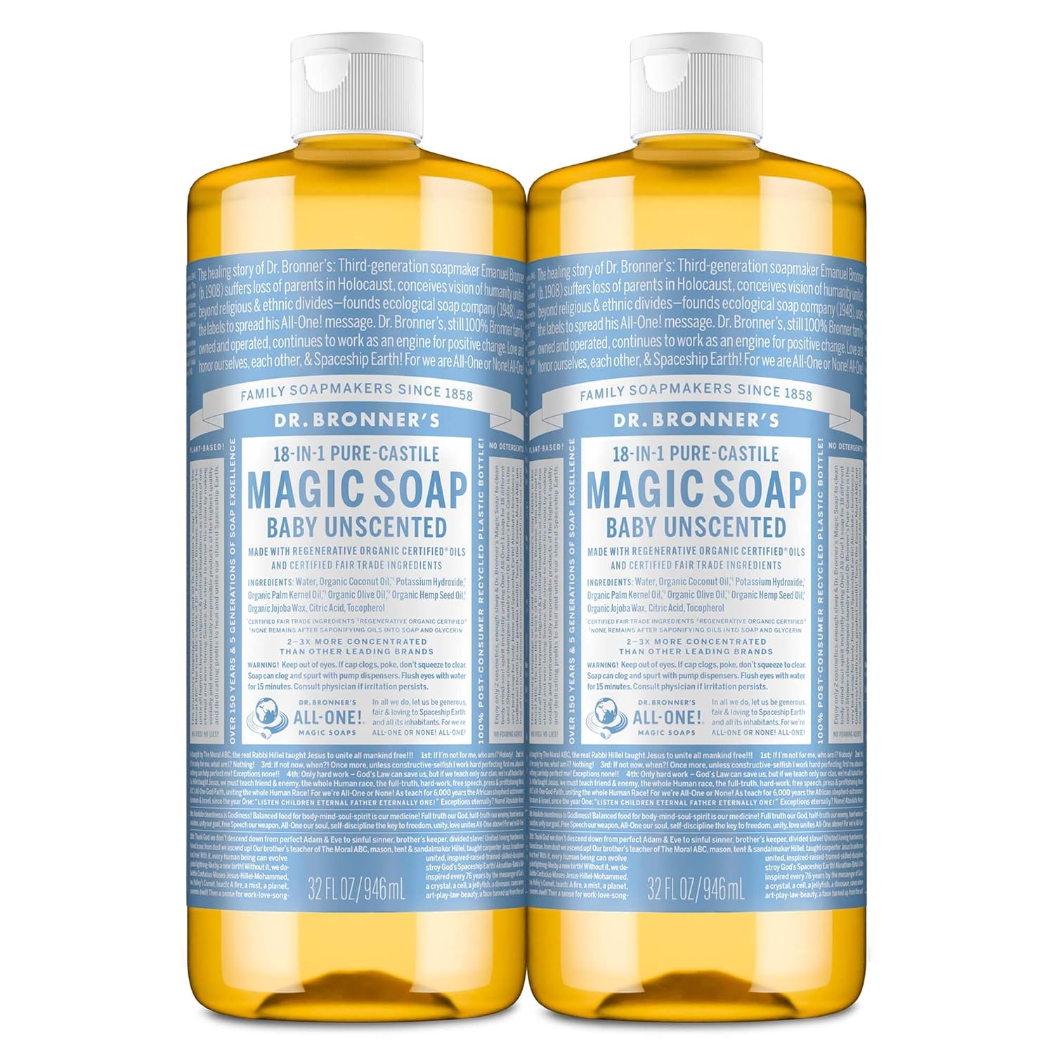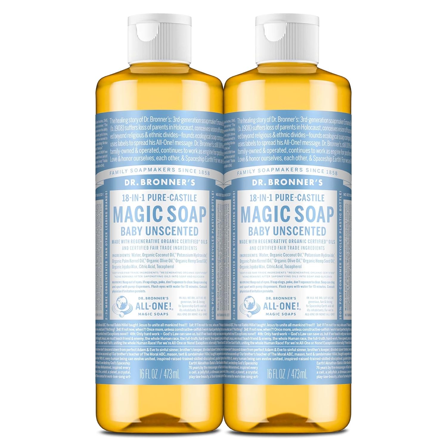 - MADE WITH ORGANIC OILS & CERTIFIED FAIR TRADE INGREDIENTS: Dr. Bronner's Pure-Castile Magic Soap are made with over 70% certified organic & fair trade ingredients—an ethical, sustainable choice and a gentle castile baby soap liquid for all!