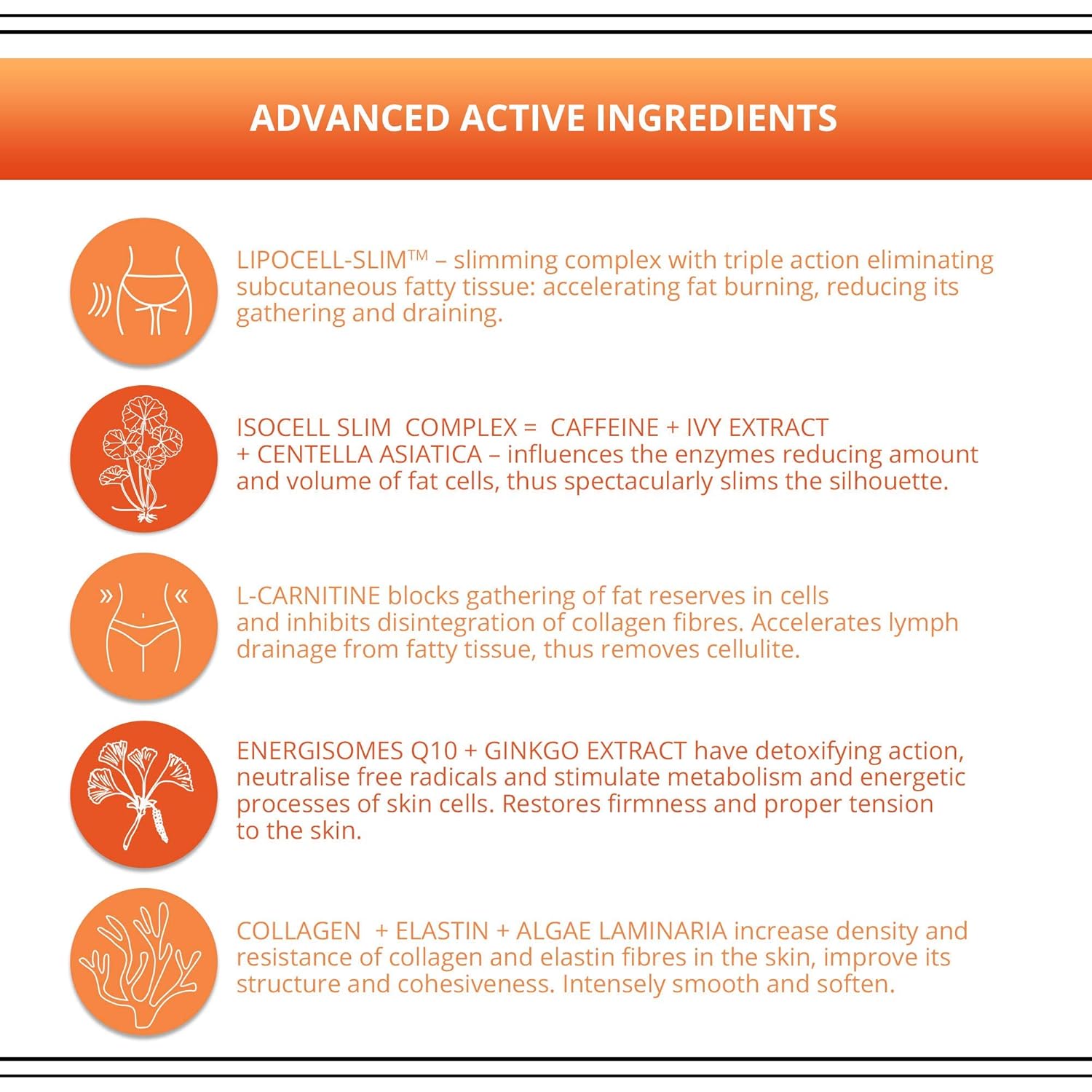 - Lifts and firms the skin. Innovative ingredients energize the skin, improve blood circulation, tighten and firm the skin. Massaging the product into the skin helps with burning fatty deposits and purifies the skin
