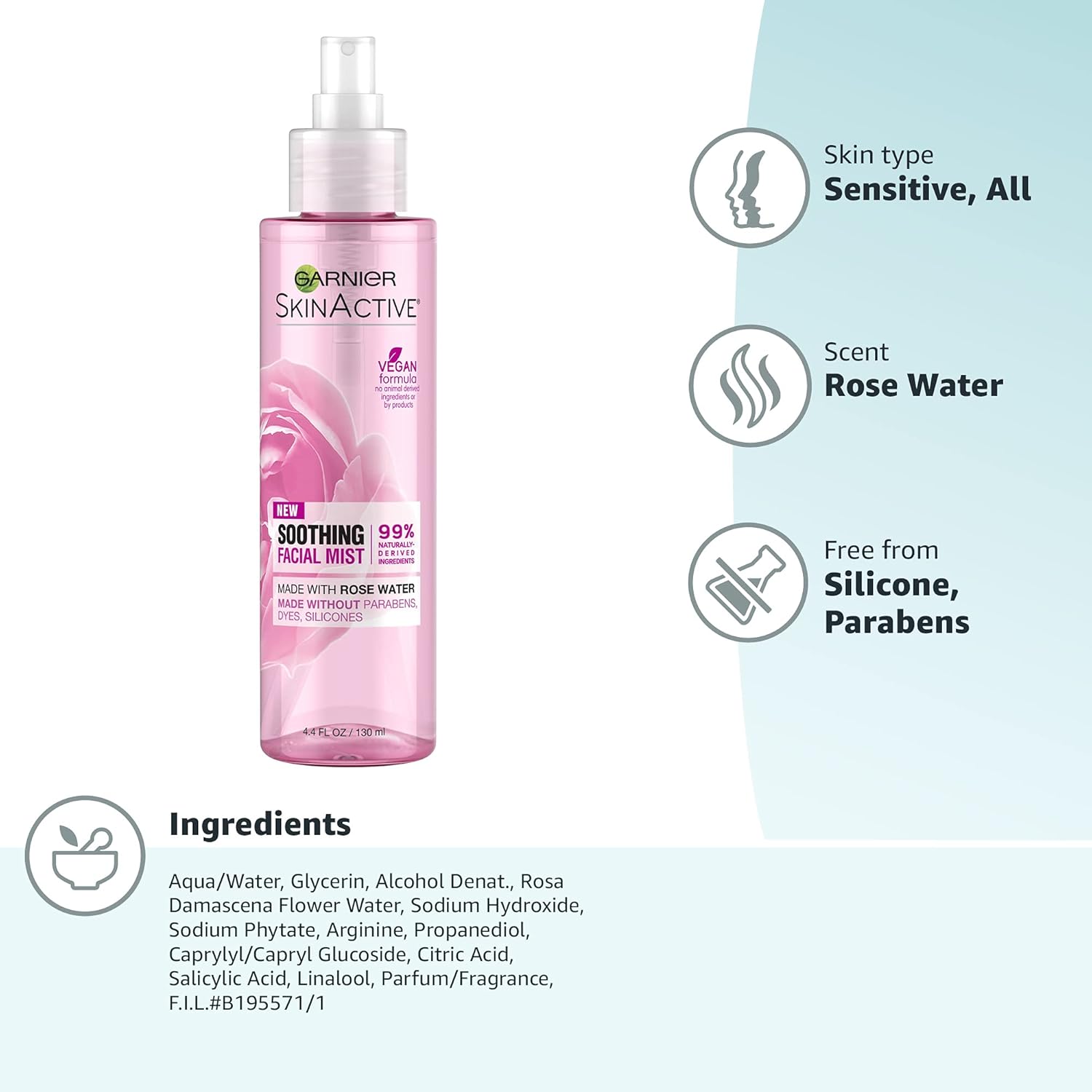 - Garnier facial Mist can be used as a moisturizer to hydrate, before makeup as a primer, after makeup to set it and enhance a dewy skin look, and anytime throughout the day to refresh skin; No need to rinse; Suitable for sensitive skin