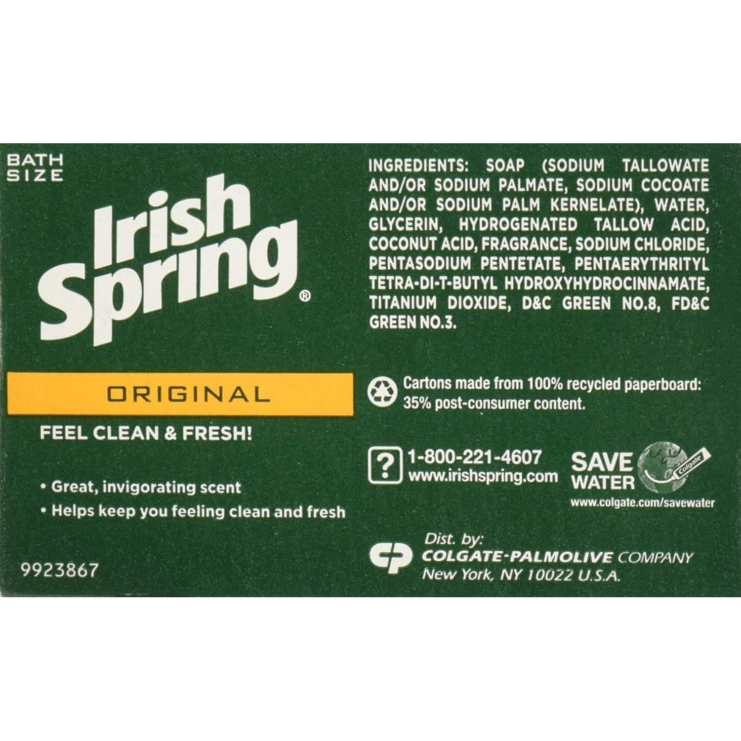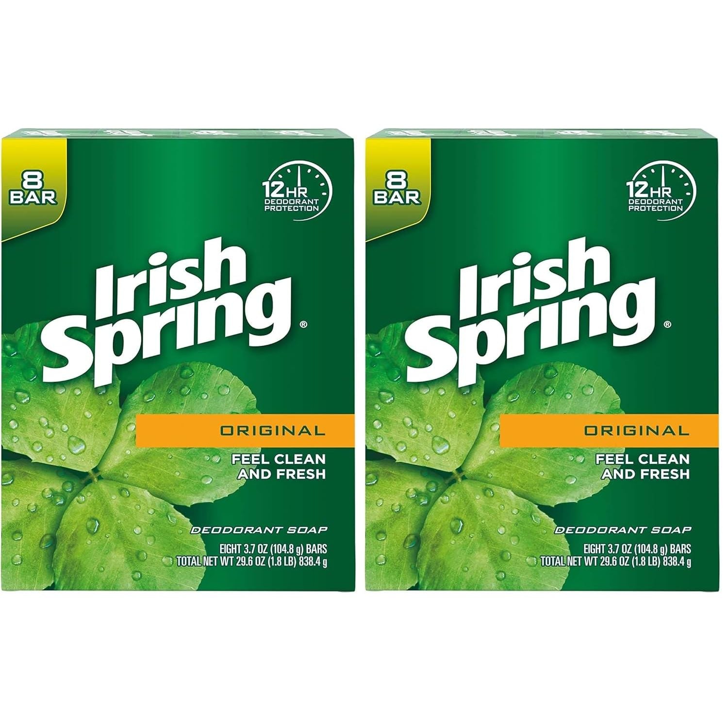 Irish Springs Original 8 Pack. Cleans without that dry skin feel! Great, revitalizing scent, helps retain your skin's natural moisture. Instantly dissolve on your skin as you shower, Irish Spring Bar Soap leaves skin feeling smooth, clean and healthy. Pack contains 8 individual bars.