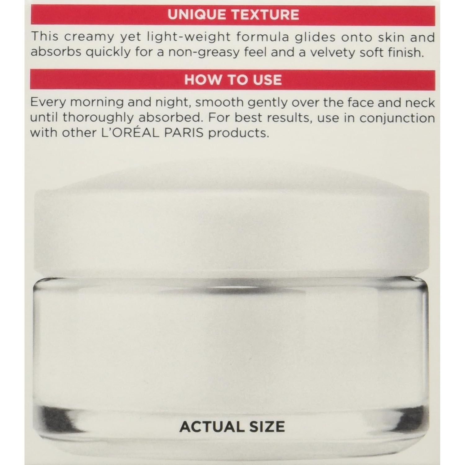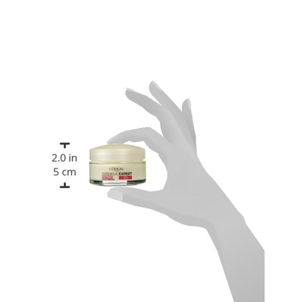 Wrinkle Expert* 45+ anti-wrinkle moisturizer is a part of L’Oral Paris’ first daily anti-wrinkle moisturizer line, which features formulas made for all of life’s stages. Skin can instantly feel softer and more supple once the wrinkle cream is applied. This daily anti-wrinkle moisturizer can help address the most common, age-related, noticeable skin care concerns. Wrinkles can appear visibly reduced and skin looks firmer. Formulated with retino-peptide, this product effectively works to help improve skin smoothness and firmness. It visibly reduces common signs of skin aging including wrinkles and skin dryness. Packaging may vary. What you receive may not be what is reflected on site. Helps reduce the look of wrinkles Helps encourage the appearance of smooth skin Helps provide all day hydration for dry skin Helps minimize common signs of skin aging Use Wrinkle Expert* 45+ anti-wrinkle moisturizer every morning and night after cleansing and/or removing makeup, smooth the anti-wrinkle moisturizer gently over the face and neck until thoroughly absorbed. For best results, use in conjunction with other L’Oral Paris skin care products. Dermatologist tested For safety. Suitable for all skin types, including sensitive.
