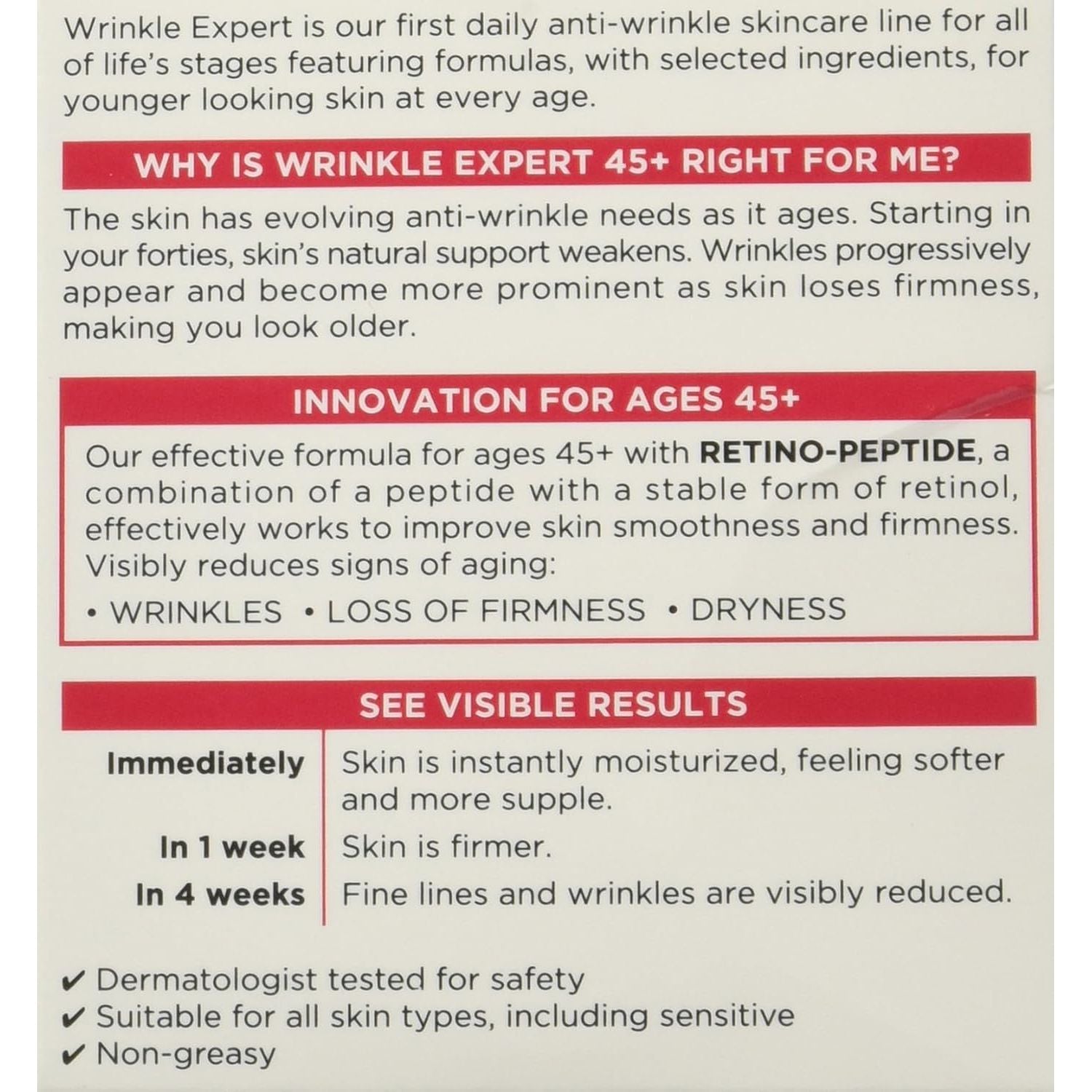 - Wrinkle Expert 45+ is an anti-aging day and night face moisturizer to reduce wrinkles and restore firmness
