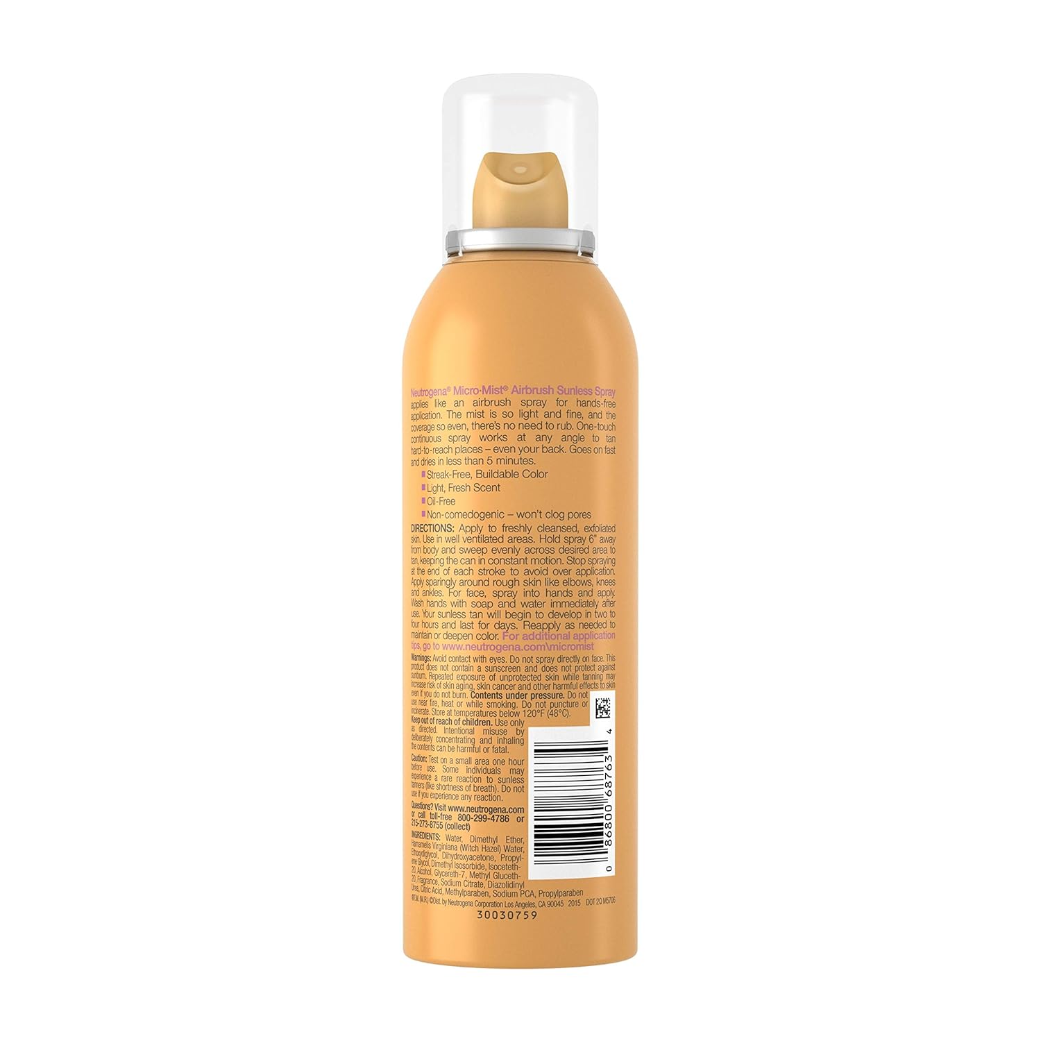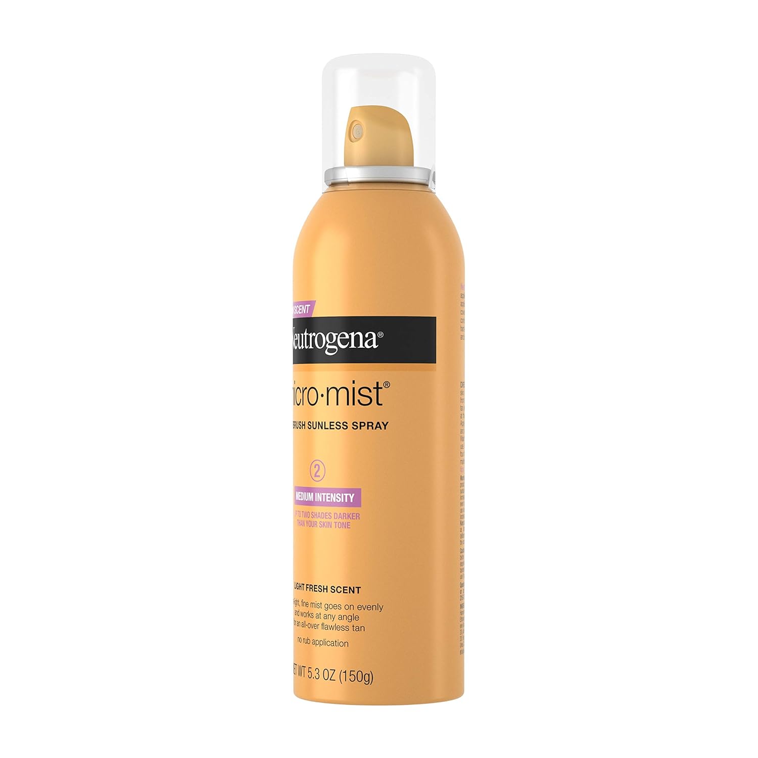 - 5.3-ounce can of Neutrogena Micromist Airbrush Sunless Gradual Tanning Spray in Medium Intensity provides a fast, easy self-tan that's two shades darker than your skin tone