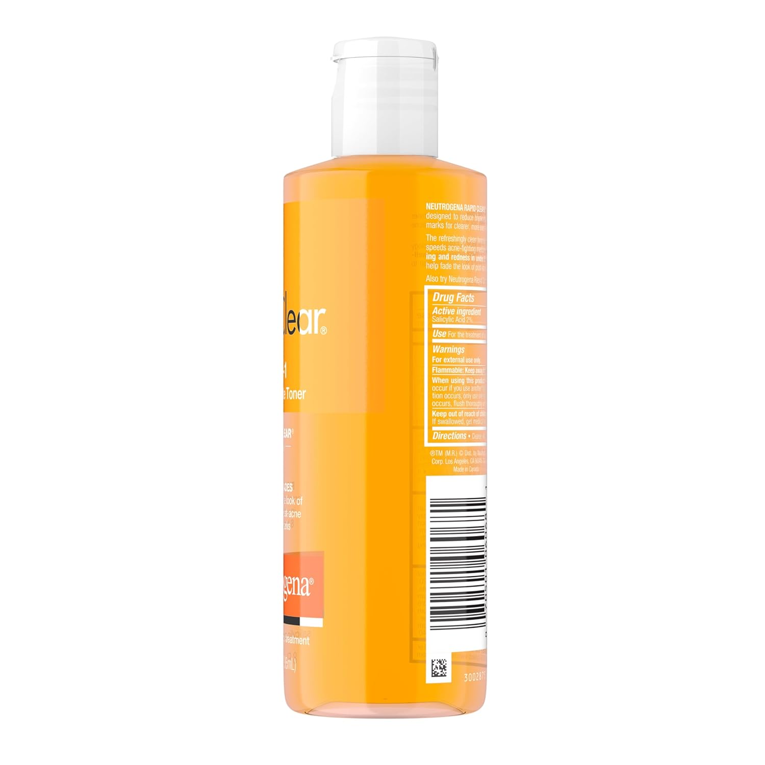 Neutrogena Rapid Clear 2-in-1 Fight & Fade Toner is the first acne toner designed to reduce breakouts in just hours and help fade the look of post-acne marks for clearer, more even-toned skin. This toner removes oil as Micro-Clear Technology speeds maximum strength salicylic acid acne medicine straight to the source of breakouts. It is formulated with glycolic acid and is designed to speed surface skin cell exfoliation. The refreshingly clean formula is clinically proven to reduce pimple size, swelling, and redness in under eight hours and accelerates surface cell exfoliation to help fade the look of post-acne marks.