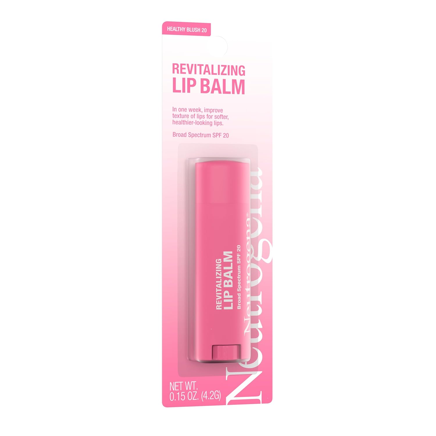 - .15 ounces of lip moisturizing Neutrogena Revitalizing Tinted Lip Balm with SPF 20 Sunscreen in a Sheer Healthy Blush 20 shade to help protect against sunburn & leave lips looking smoother & more defined