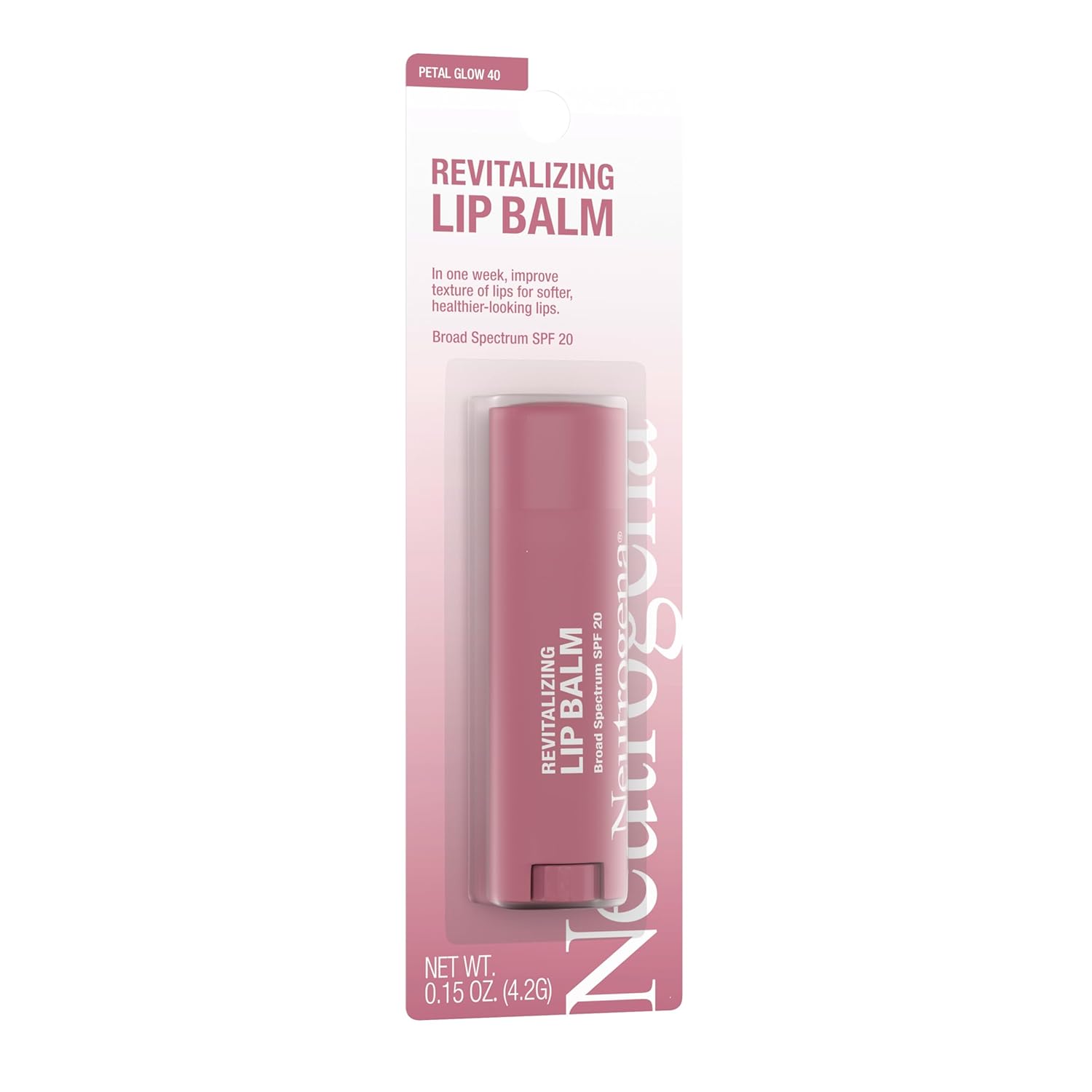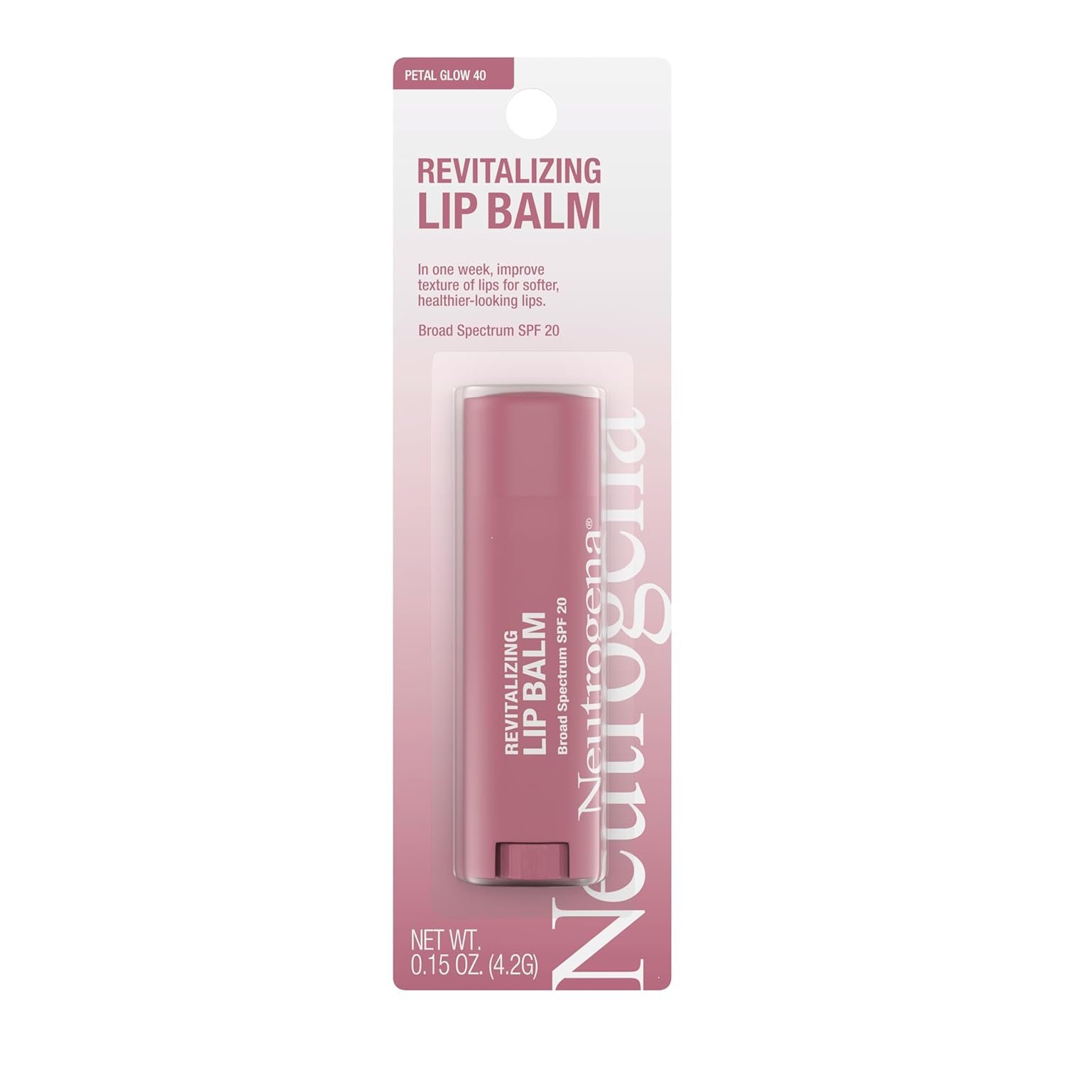 - .15 ounces of lip moisturizing Neutrogena Revitalizing Tinted Lip Balm with SPF 20 Sunscreen in a Sheer Petal Glow 40 shade to help protect against sunburn & leave lips looking smoother & more defined