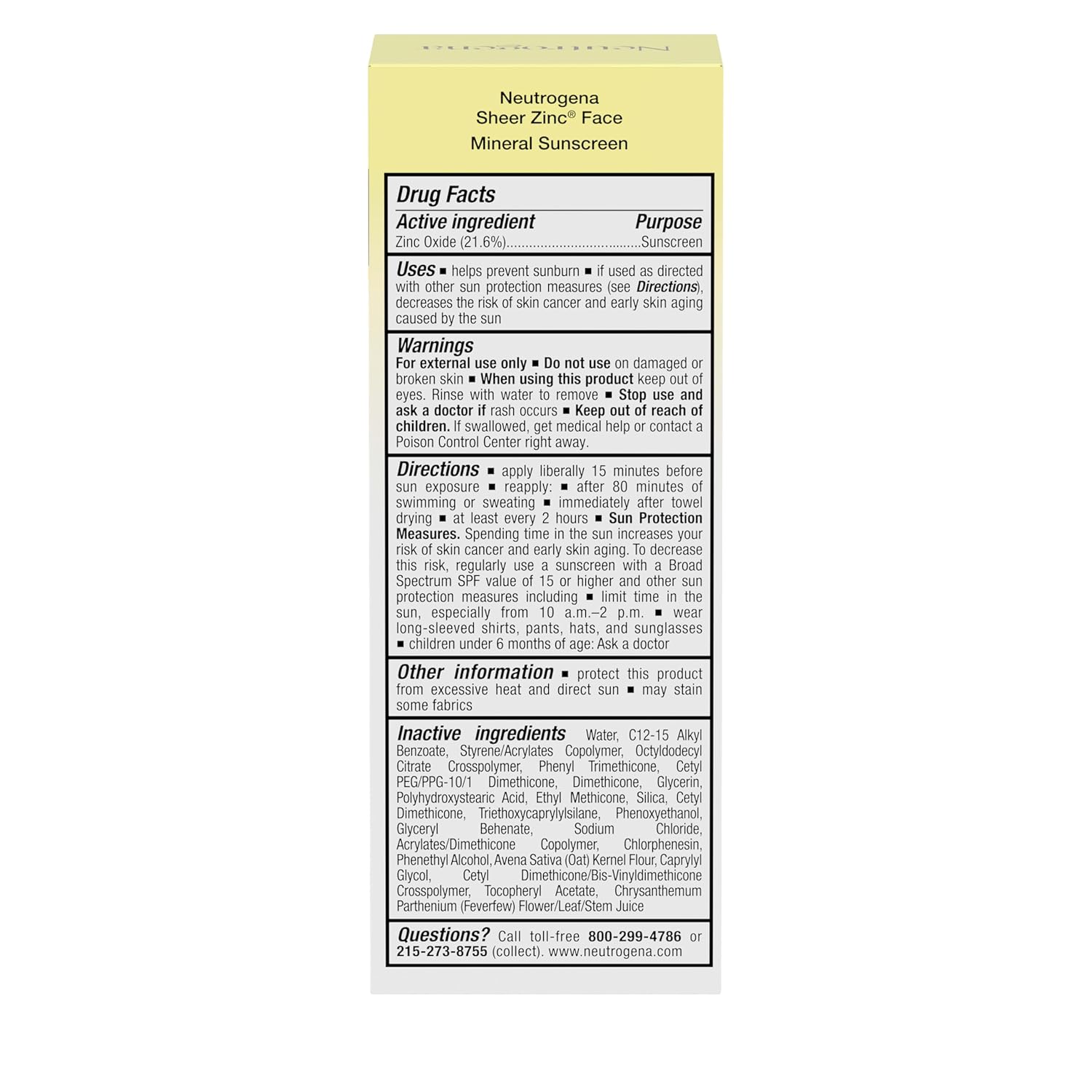 - 2-fluid ounces of Neutrogena Sheer Zinc Face Dry-Touch Sunscreen Lotion with Broad Spectrum SPF 50 provides superior protection against aging UVA and burning UVB rays to help prevent sunburn