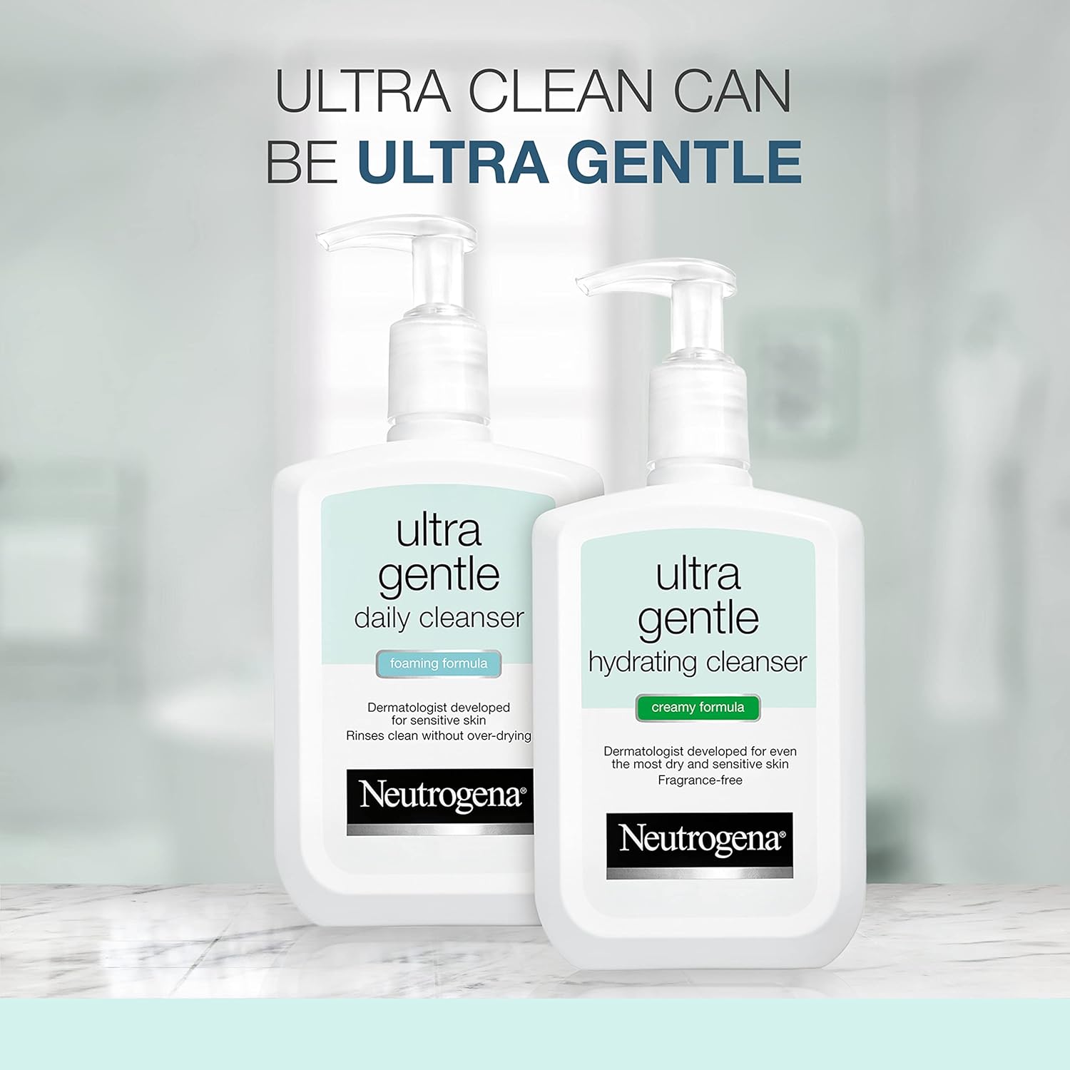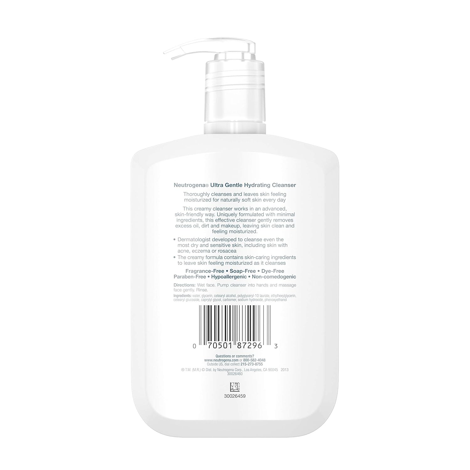 Product Description Gently cleanse skin and leave it feeling moisturized in just one step with Neutrogena Ultra Gentle Hydrating Facial Cleanser. Dermatologist developed for even the most dry and sensitive skin, this effective, yet extraordinarily mild non-foaming cleanser provides the superior cleansing of Neutrogena in a sensitive skin face wash. With its unique skin-nourishing polyglycerin formula, this extra gentle face wash cleanses even the most sensitive skin, including skin with acne, eczema or rosacea. Our creamy, hydrating cleanser washes away excess oil, dirt, bacteria and makeup leaving skin feeling clean, moisturized and naturally soft. Daily face wash is uniquely formulated with minimal ingredients and is dye-, oil-, soap-, fragrance- and paraben-free. Clinically proven to be gentle on sensitive skin, it is also hypoallergenic and non-comedogenic so it won't clog pores. This gentle face wash makes a great addition to a daily skincare routine. Brand Story By Neutrogena