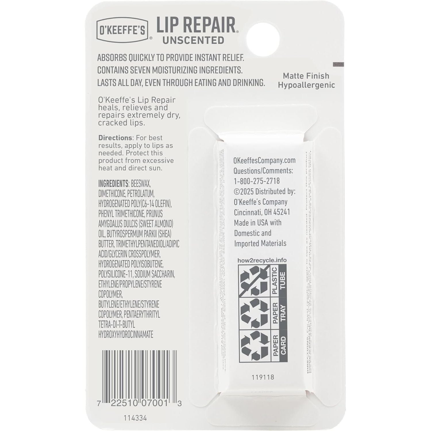 O'Keeffe's Lip Repair Unscented Lip Balm for Dry, Cracked Lips - Stick (1 Pack) - Moisturizer for Very Dry Lips