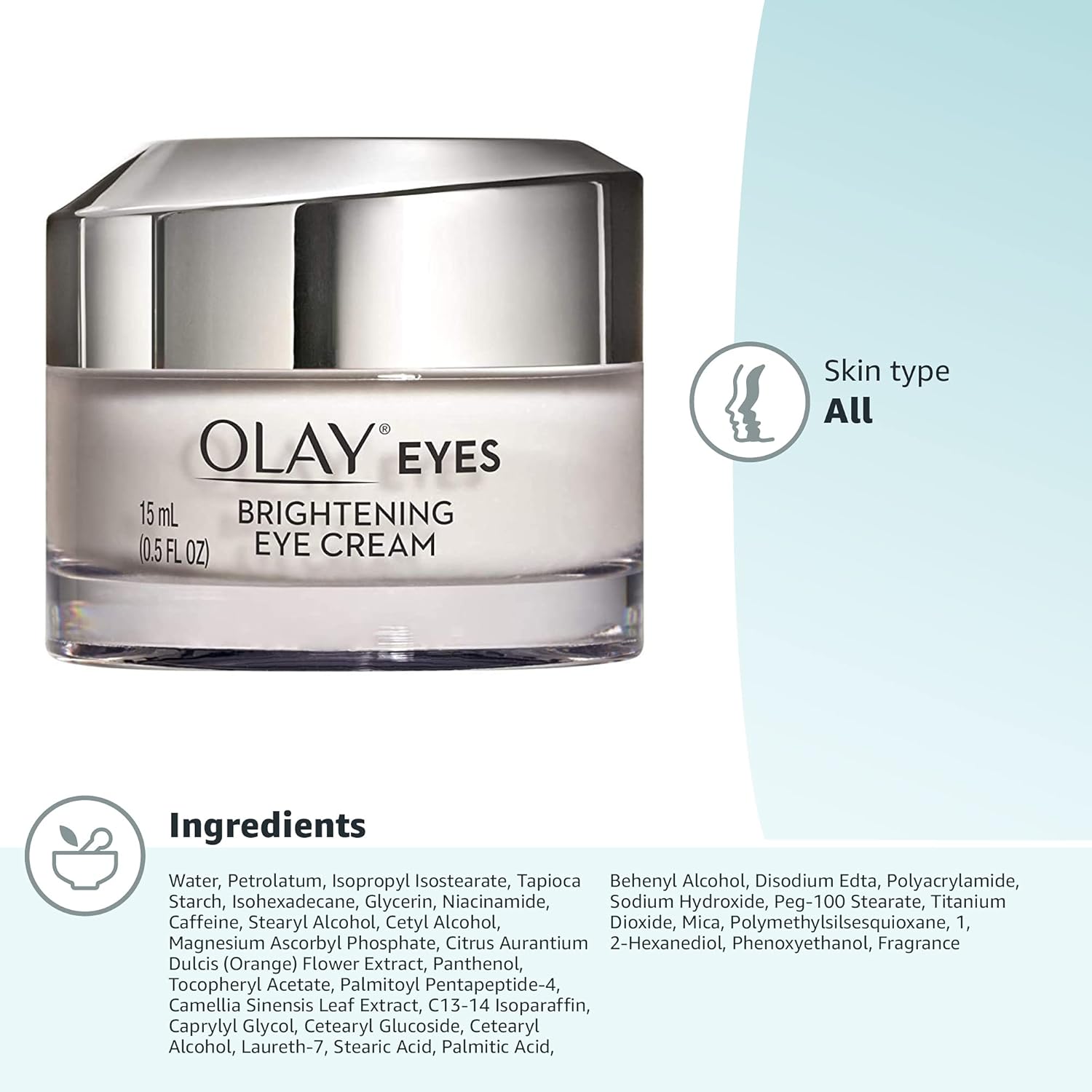 Your eyes—they’re the first to tell when you stay up too late, have too much on your plate or haven’t been eating your fruits and veggies. But with Olay brightening Eye Cream, your eyes will hide your secrets. This eye cream hydrates directly under the eye area to help visibly reduce dark circles, wrinkles and smooth fine lines to give you that well-rested, youthful look. It’s a deeply enriched formula made for all skin types and is infused with Vitamins B3 and C, Caffeine and Optic Brighteners to protect skin from pollutants & hydrate to deliver a younger look. Also, you might not realize, but the area around your eyes is thinner and more delicate, making it the first area on your face to show signs of fatigue and stress. That’s why this formula is enriched with vitamins and a light-reflecting complex to not just help minimize under-eye problems, but also brighten your look. Use Olay daily and see skin transformation in 28 days.