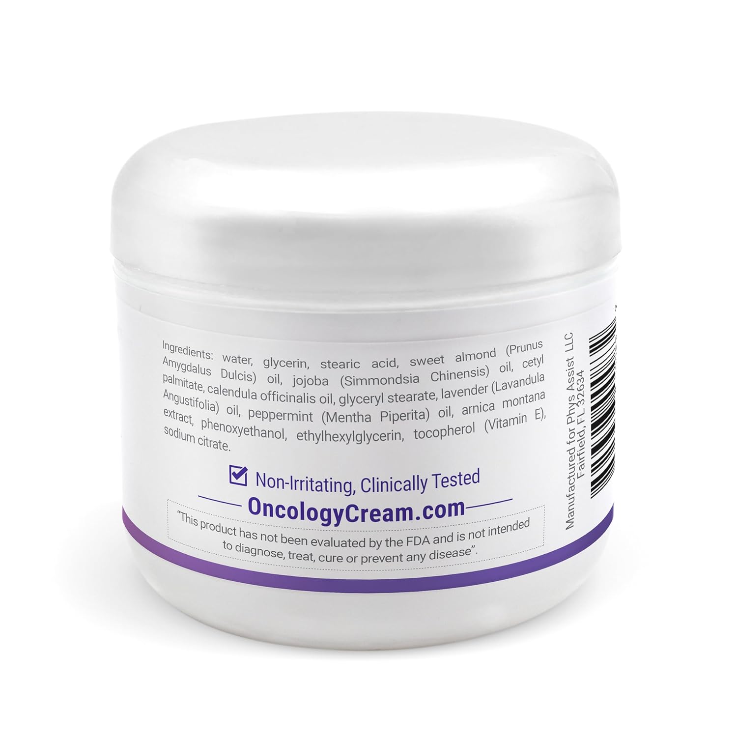 PhysAssist Oncology Cream is without alcohol, perfume, Paraben or Color. is specially designed for use before, during Stressful times. Its carefully selected ingredients are ultra moisturizing and soothing to Dry, Stressed, cracked skin. Contains Glycerin, Essential oils of Lavender, Calendula, Peppermint . PhysAssist Oncology Cream's fine texture allows it to be, non-greasy and non-staining. Its natural botanical ingredients offer a pleasant scent. Ingredients: water, glycerin, sweet almond (Prunus Amigdalus Dulcis) oil, stearic acid, jojoba (Buxus Chinensis) oil, cetyl palmitate, Lavender (Lavandula augustifolia) Oil, tea tree( Melaleuca Alternifolia)oil , peppermint (Mentha Peperita) oil, calendula(Officinalis) extract, glyceryl stearate, arnica montana extract, sodium borate, phenoxyethanol, ethylhexylglycerin, tocopherol (Vitamin E), sodium citrate.