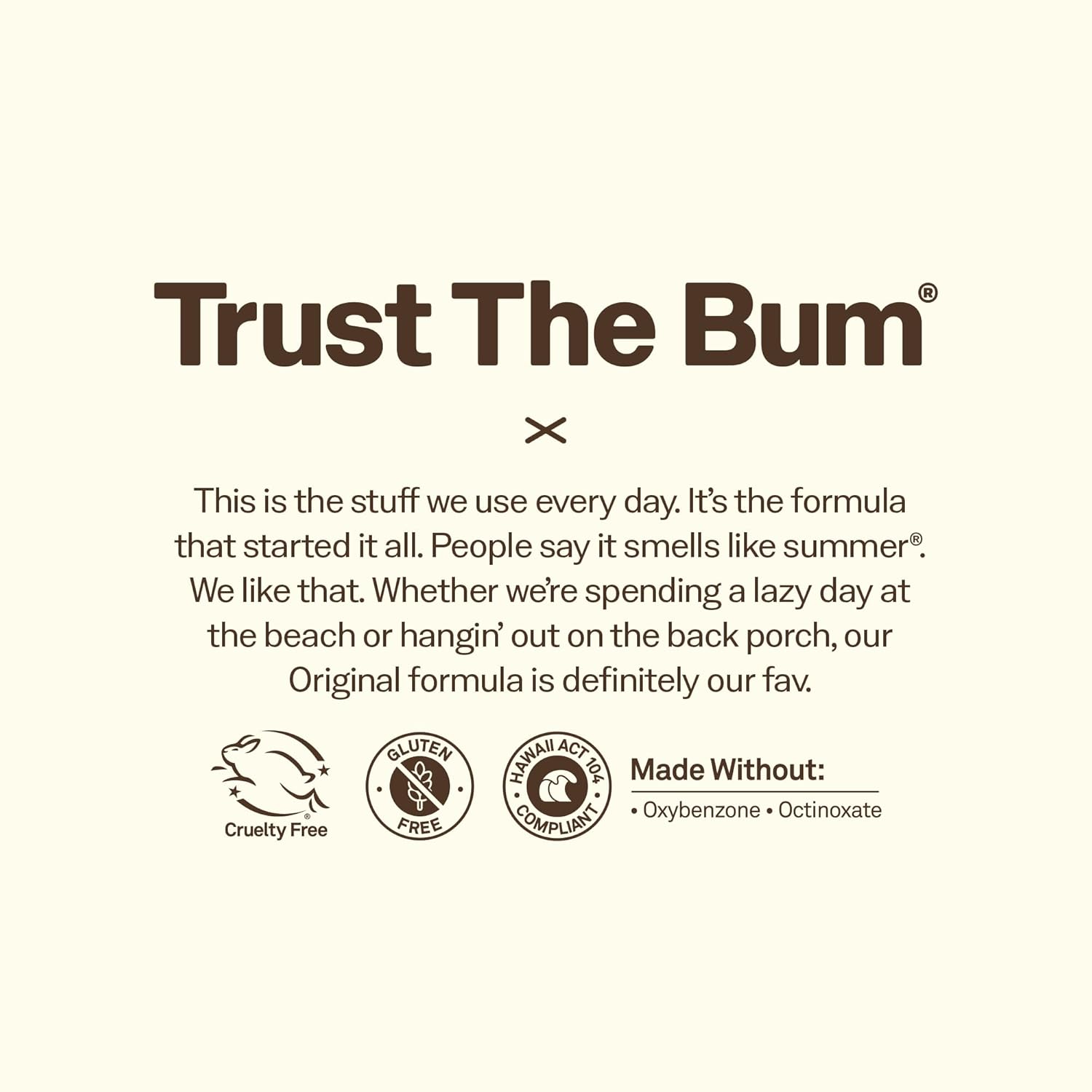 • TRUST THE BUM. What does that mean? It means trust us, the ones who live on the beach and need products that work on the most intense days in the sun. The simple truth is, when you make products to protect the ones you love, you make ‘em better.