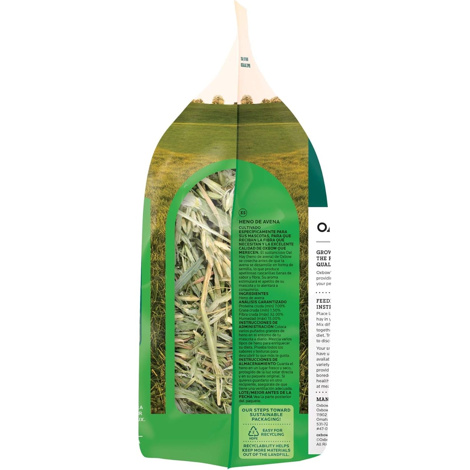 Oxbow Oat Hay is a premium, hand-selected grass hay carefully grown and harvested to support the unique dietary needs of small herbivores, including rabbits, guinea pigs, chinchillas, and other small pets. Known for its sweet smell and crunchy husks, this natural hay is harvested at the optimal stage before the oat develops into a seed, locking in the perfect balance of flavor and nutrition for your pet. High in fiber and low in protein, Oxbow Oat Hay plays an essential role in maintaining digestive health and dental wear. The long strands of hay encourage natural chewing, which helps prevent molar spurs and other common dental issues in small pets, while the fiber-rich forage keeps the digestive system active and healthy. This balance makes Oat Hay an ideal daily feed option for small animals that rely on hay as the cornerstone of their diet. Beyond nutrition, Oxbow Oat Hay provides important enrichment. The savory aroma and crunchy texture encourage natural foraging instincts, adding mental stimulation and variety to your pet’s day. Mixing Oat Hay with other Oxbow hays, such as Timothy, Orchard, or Botanical, offers your pet a diverse and enriching diet that keeps them excited for every mealtime. Every bag of Oxbow Oat Hay is hand-sorted to ensure premium quality and consistency. With no artificial colors, flavors, or preservatives, this hay is a wholesome choice you can trust to deliver natural nutrition. It can also serve multiple purposes beyond feeding, such as providing a cozy, natural bedding material or an engaging addition to your pet’s habitat. Trusted by veterinarians and loved by pets, Oxbow Oat Hay supports a balanced small animal diet and encourages a happy, healthy lifestyle. Whether offered on its own, paired with other hays, or used to create environmental variety, this hay provides everything your small pet needs for nutrition, enrichment, and daily well-being.
