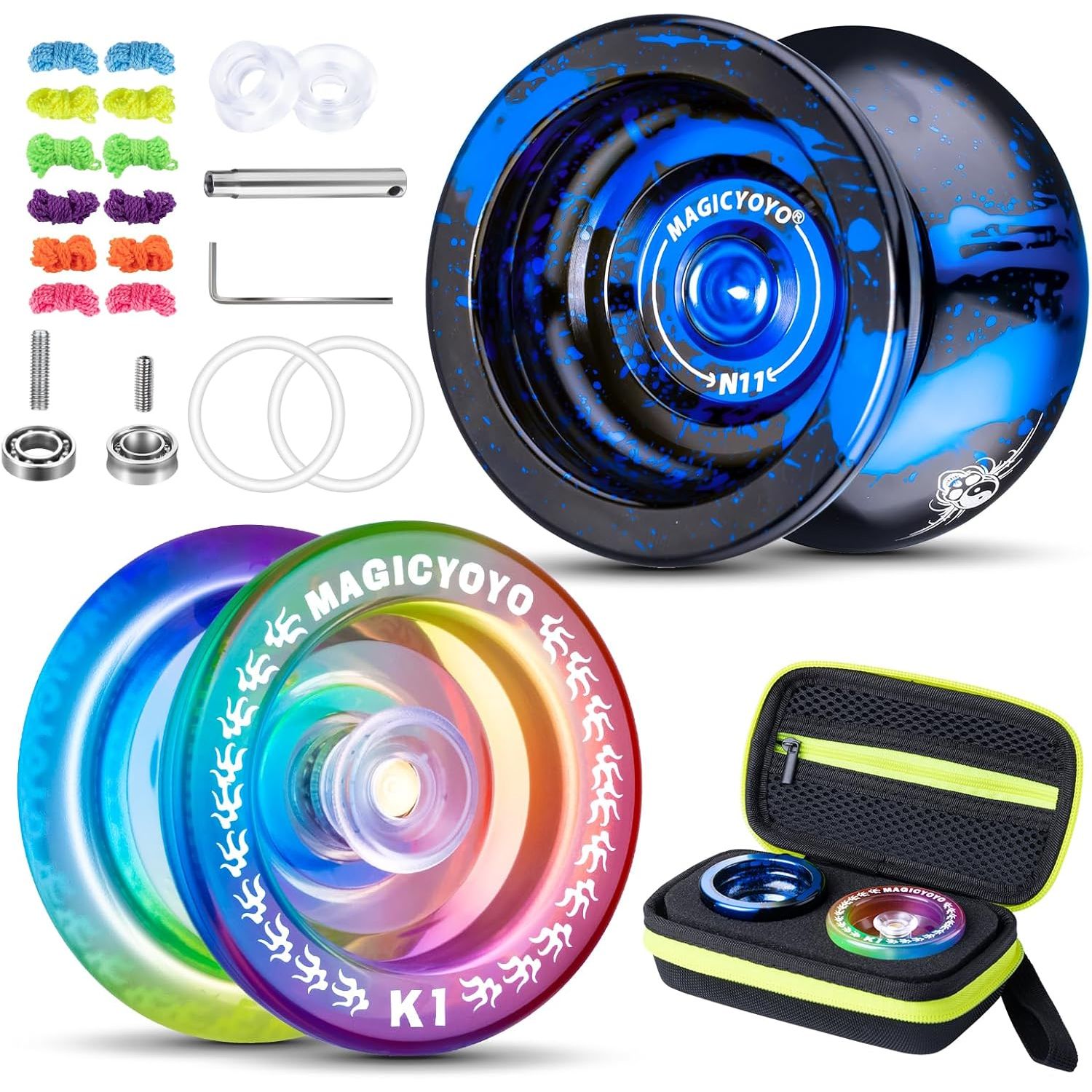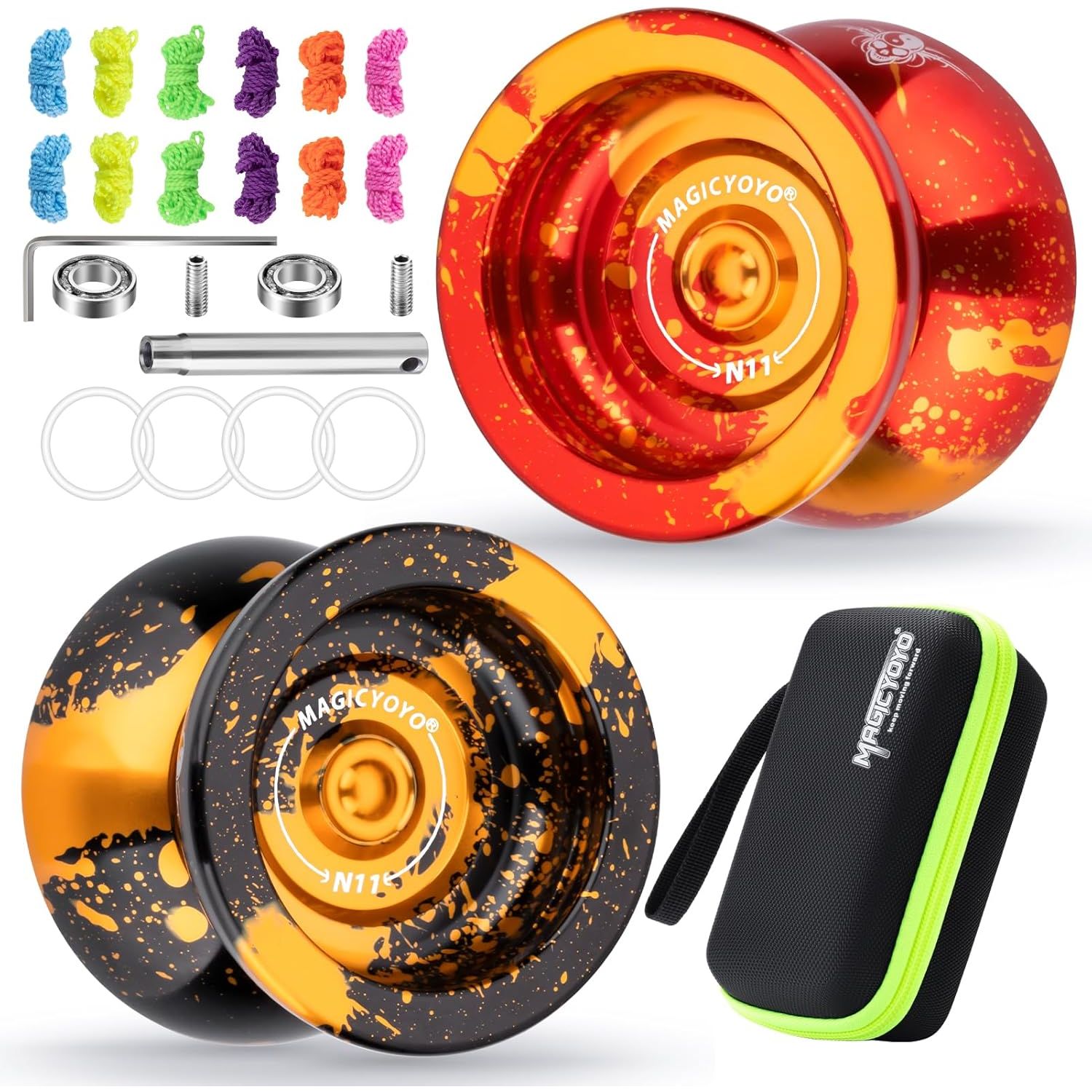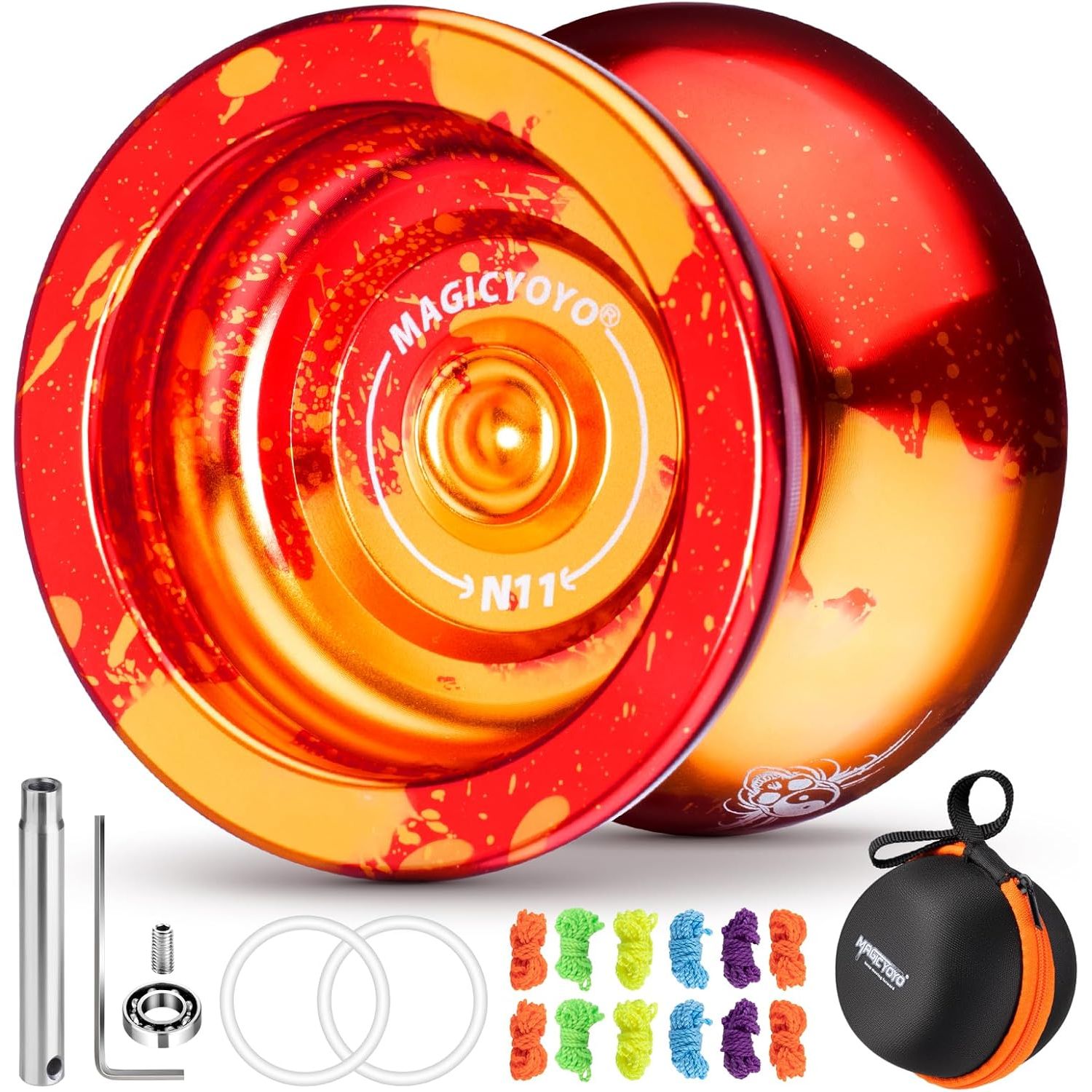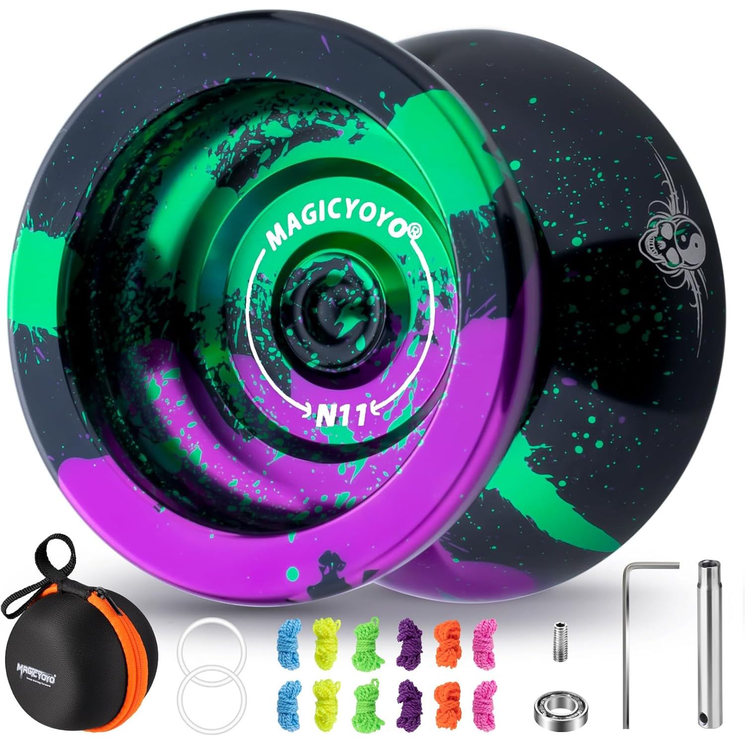 The MAGICYOYO N11 series is one of the Hot-selling classics, loved by yo-yo enthusiasts for its exceptional performance, durability, and innovative design. Featuring dual-function modes, silicone weight rings, and an inner concave wall, the N11 is designed to help players of all levels practice, explore, and master advanced tricks with ease. From beginner to pro, the N11 is the ideal choice to take your skills to the next level
