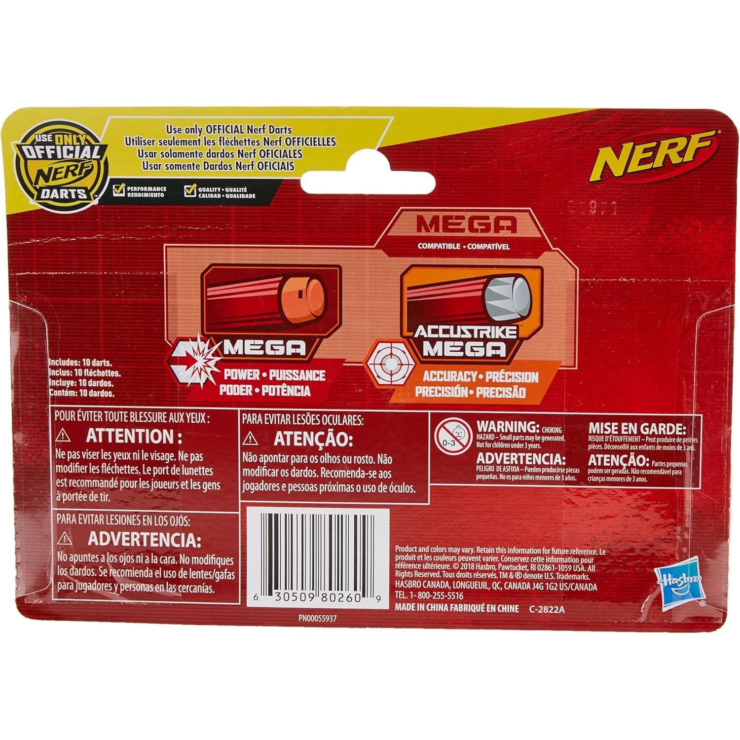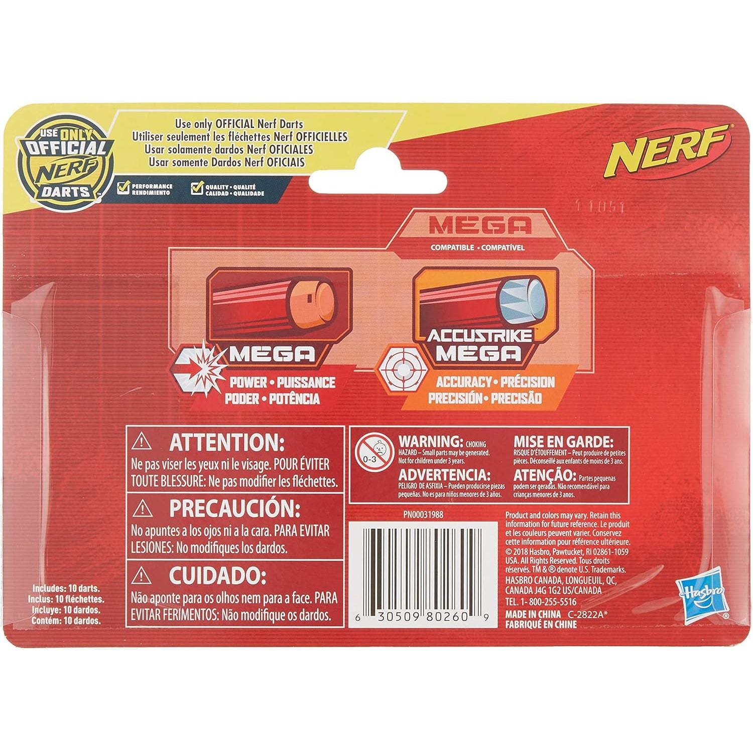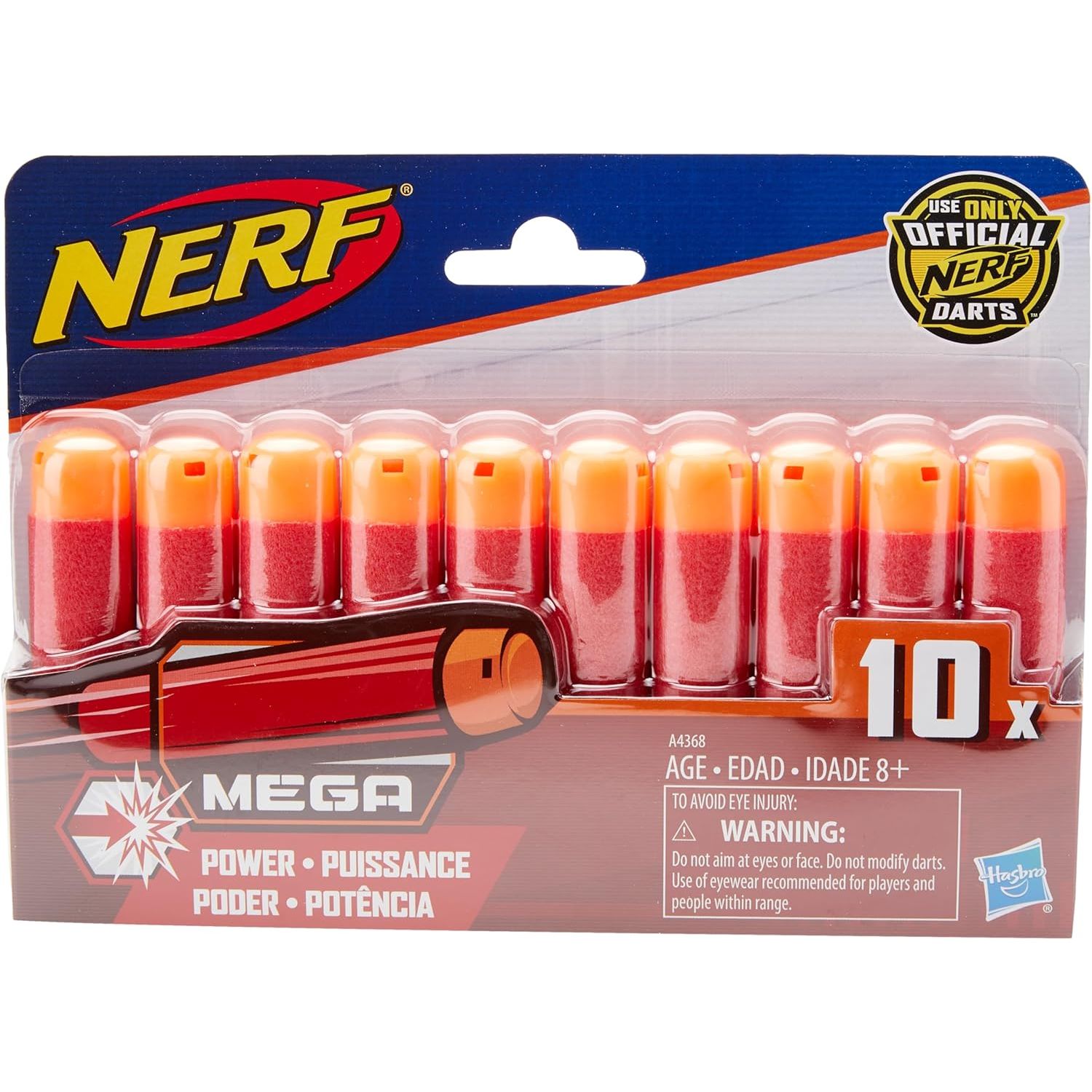 Includes: -10 official Nerf Mega Darts *WARNING* Choking hazard, small parts may be generated..