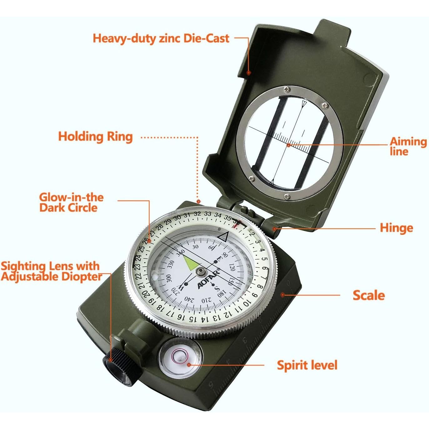 - AOFAR Military Compass,AF-4580 Lensatic Sighting, Waterproof and Shakeproof with Map Measurer Distance Calculator, Pouch for Camping, Hiking