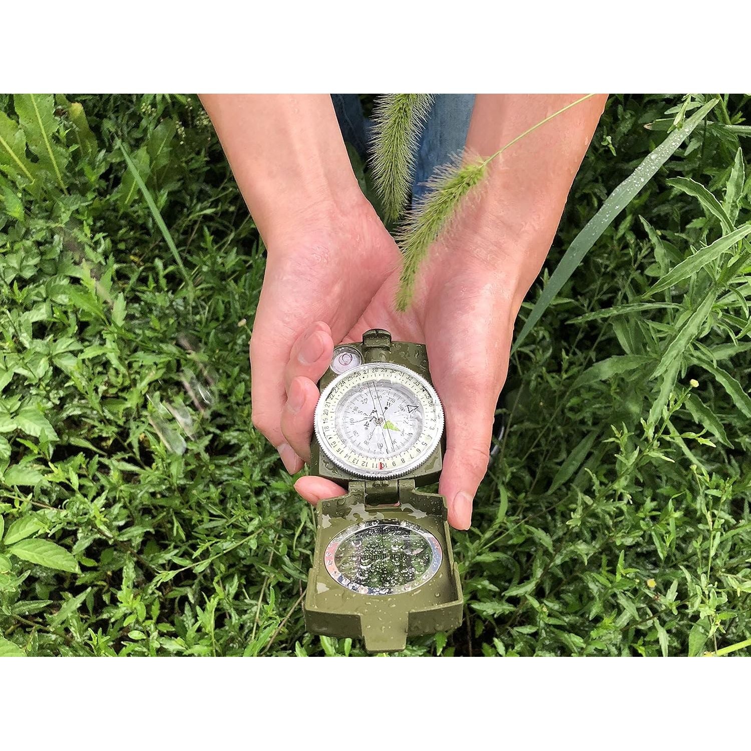 - Durable and Compact: Durable military metal compass. Thermoelastic liquid-filled capsule.High accuracy and waterproof. Works well in all weather conditions.