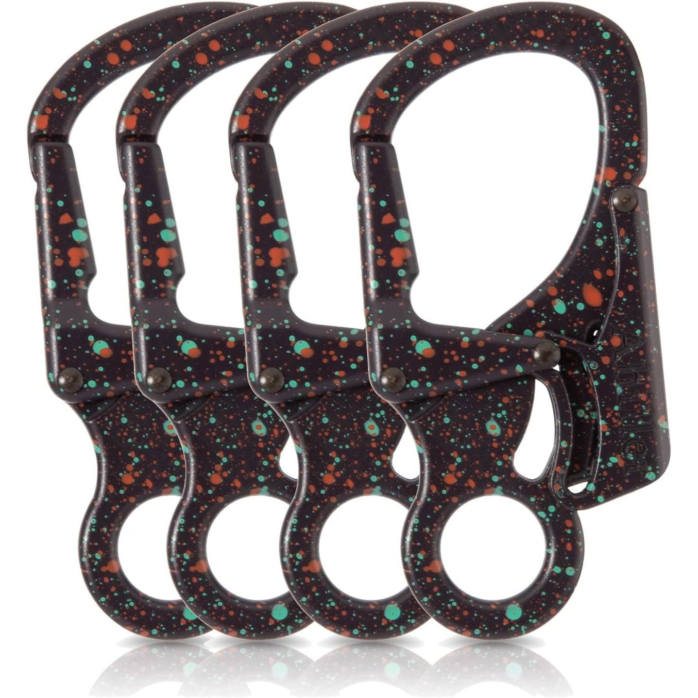 These carabiners are made of zinc alloy and weigh only 35 grams individually, but can support 120 kg of stationary objects. Small body, and big energy.