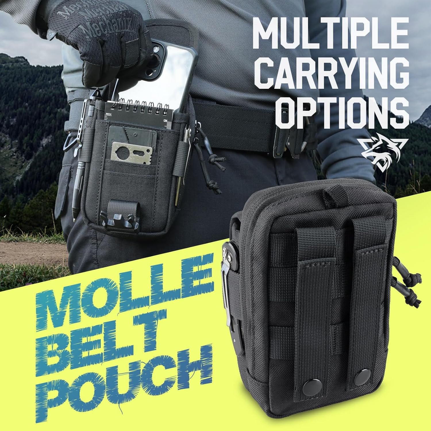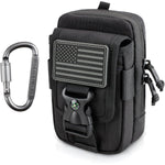 - HANDS-FREE MANNER: Tactical EDC Phone Pouch with Molle back straps can be attached to tactical backpack, battle belt, or other Molle gears as an extra exterior pouch. Comes with a detachable carabiner on the rear belt loop can be use as small tactical EDC pouch, cellphone waist bag, bum pack, gadget pouch or utility belt pouch on your shoulder strap/belt loop, then in a hands-free manner.