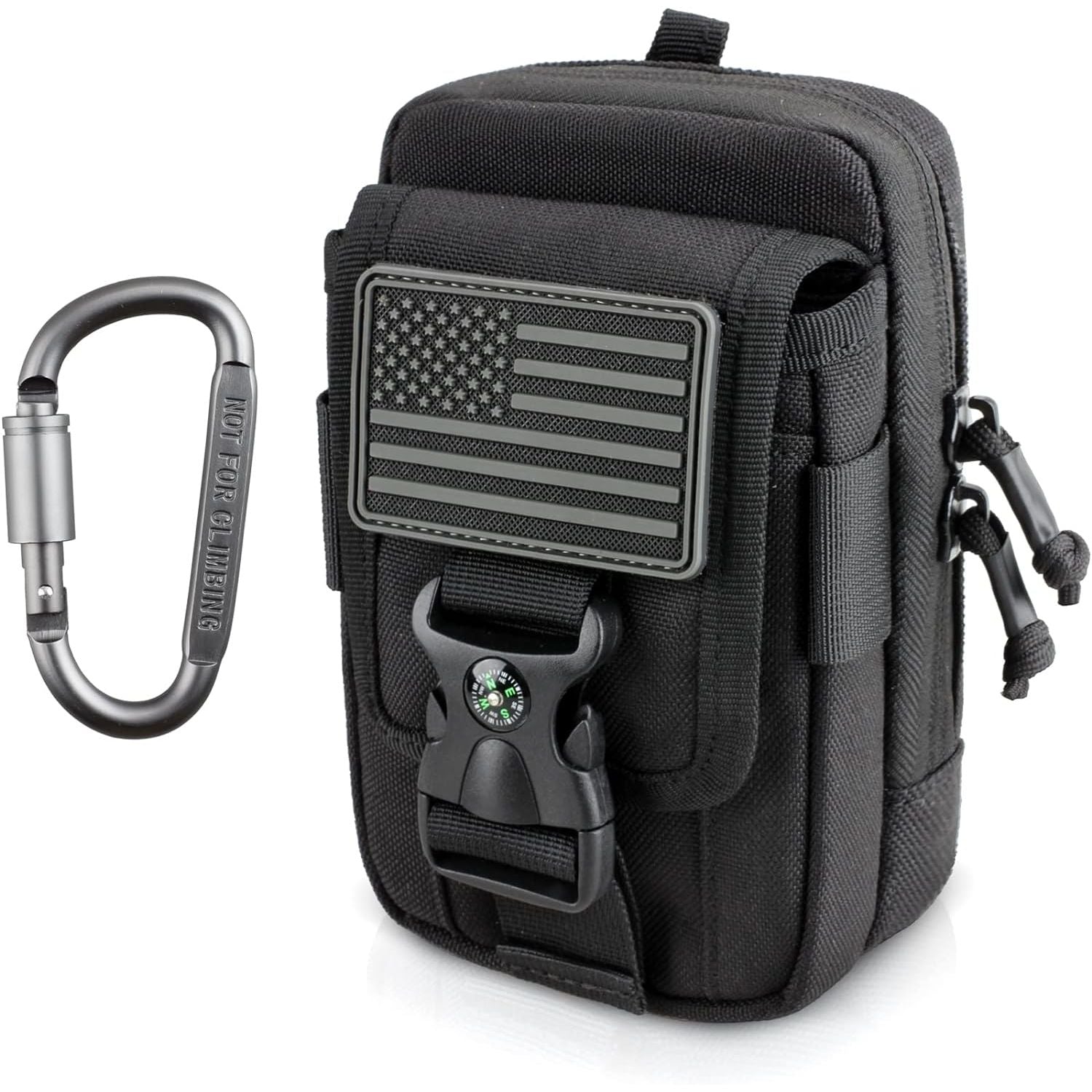 - WYNEX Tactical Compass Phone Pouch, Large Molle Smartphone Holster Case Double Capacity Small Utility EDC Pouch with Compass Buckle and Carabiner