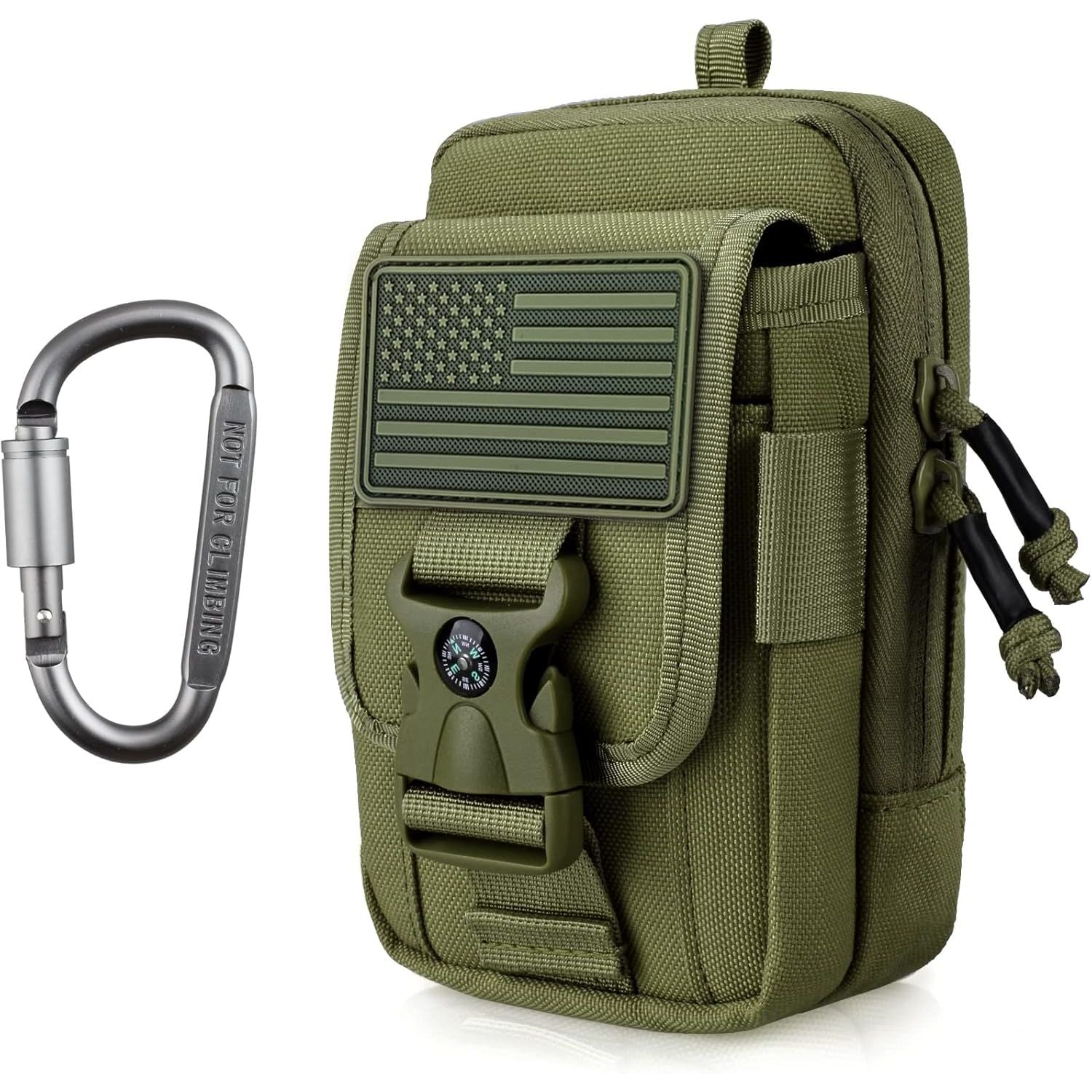 - VERSATILE COMPASS BUCKLE STRAP: Tactical Phone Pouch has a humanity design, the front buckle with build-in compass can double secure your stuffs and helps you determine your location on maps, and lets you navigate safely! Functional molle accessories for on the go.