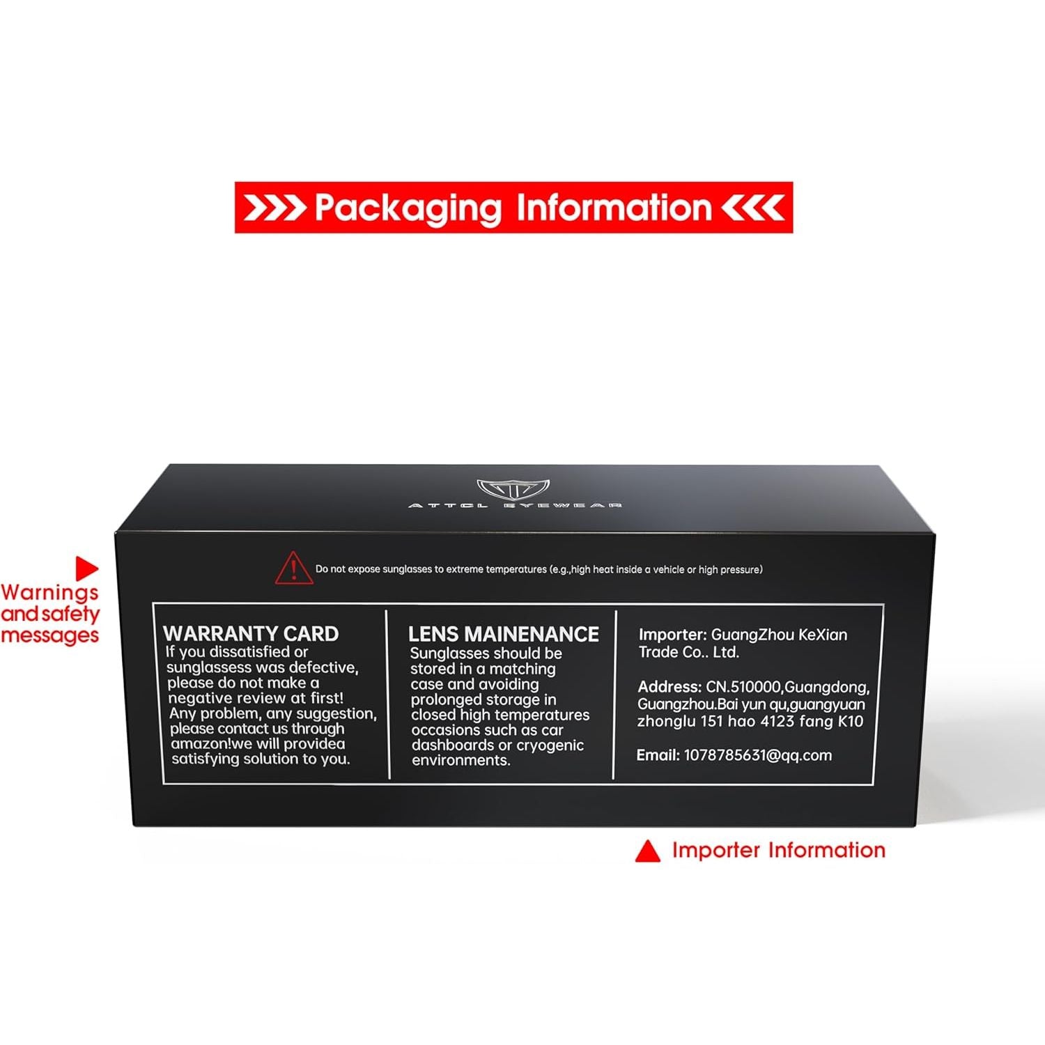 - 24/7 ONLINE INFORMATION INQUIRY: If you have questions about the fit, lens clarity, or frame durability of your ATTCL sunglasses, please click our name below and select 'Ask A Question.' WE WILL PROVIDE PROMPT ASSISTANCE TO ADDRESS YOUR CONCERNS