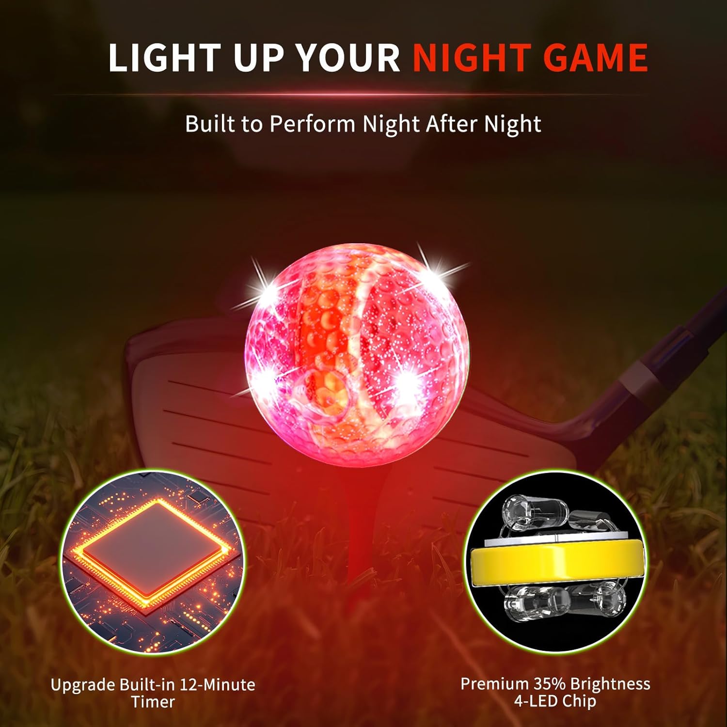 - 【BUILT-IN 4 LED LIGHTS】The Glow golf ball have New Brightness Upgrade and built-in 4 LED lights, When you hit the ball, the ball is very super bright.will Shows One Beautiful Arc in the Sky.