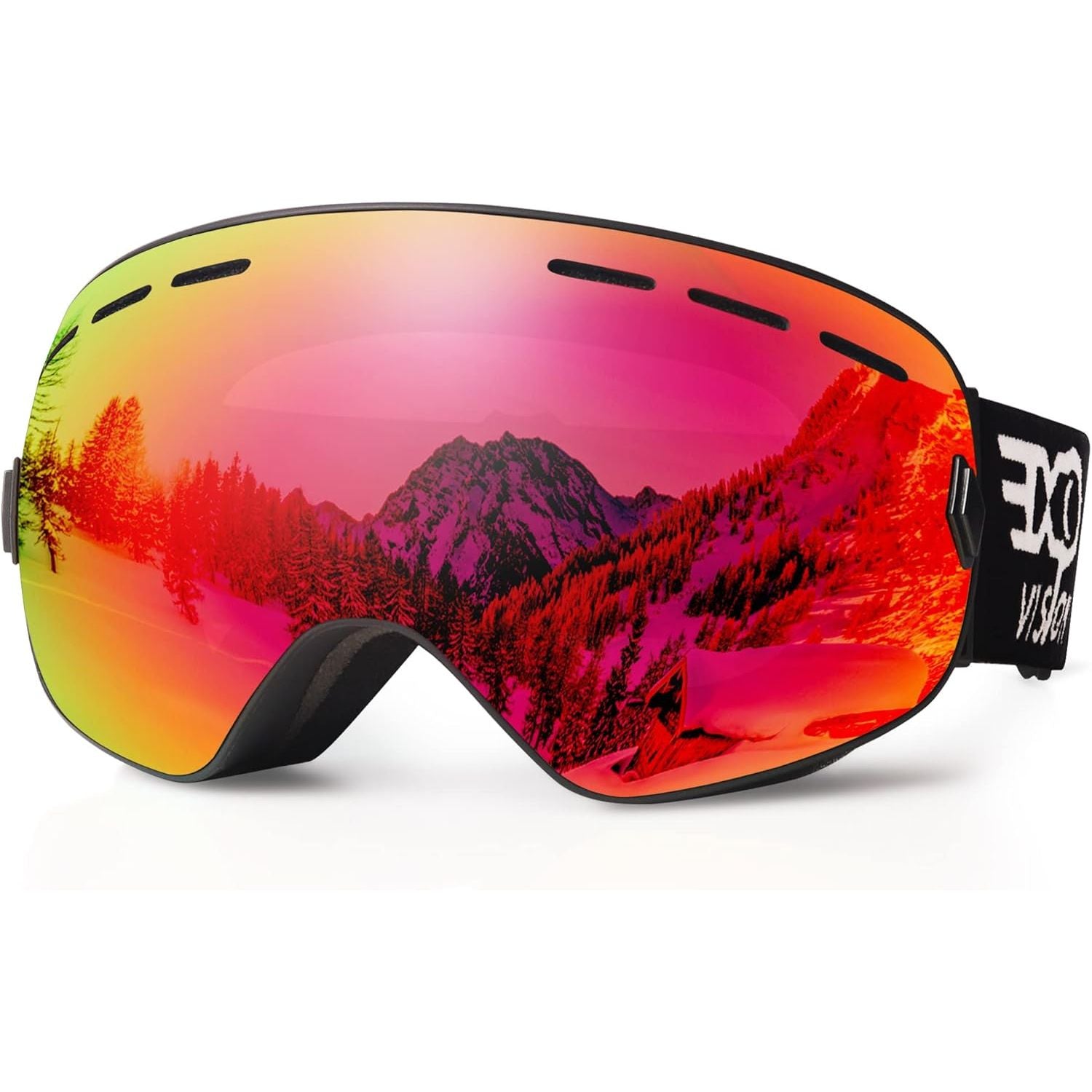 - Spherical Dual REVO Lenses: The professional adult ski goggles design as Frameless. The lens of the ski goggles is very clear. The Winter Sports Goggles would take you wide and clean vision, you can see the beautiful snow scene without blocking your view when you are snowboarding downhill. The full REVO coating makes it much more cool and scratch proof.