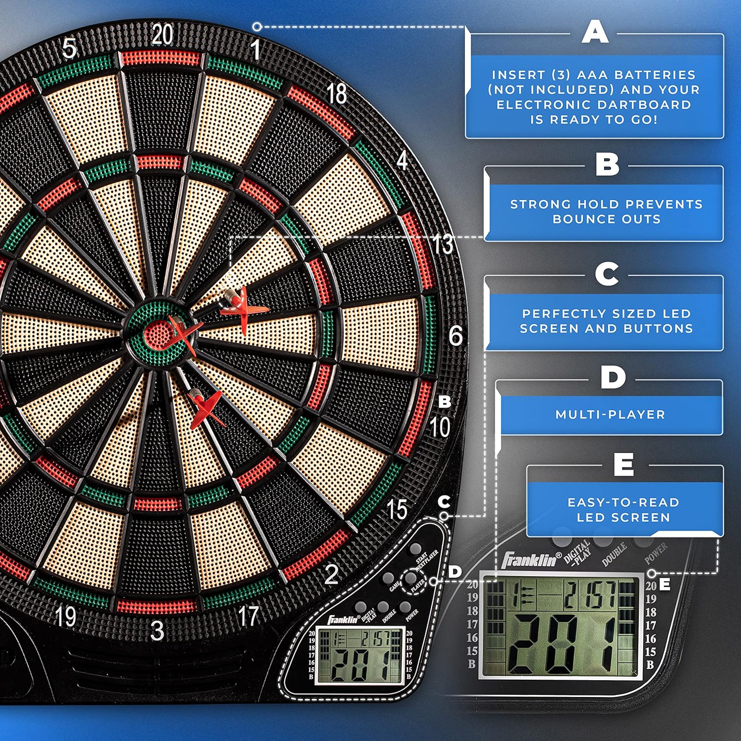 Franklin Sports Electronic Dart Board Sets - Soft Tip Electric Dartboard with Digital Scoreboard - (6) Darts Included