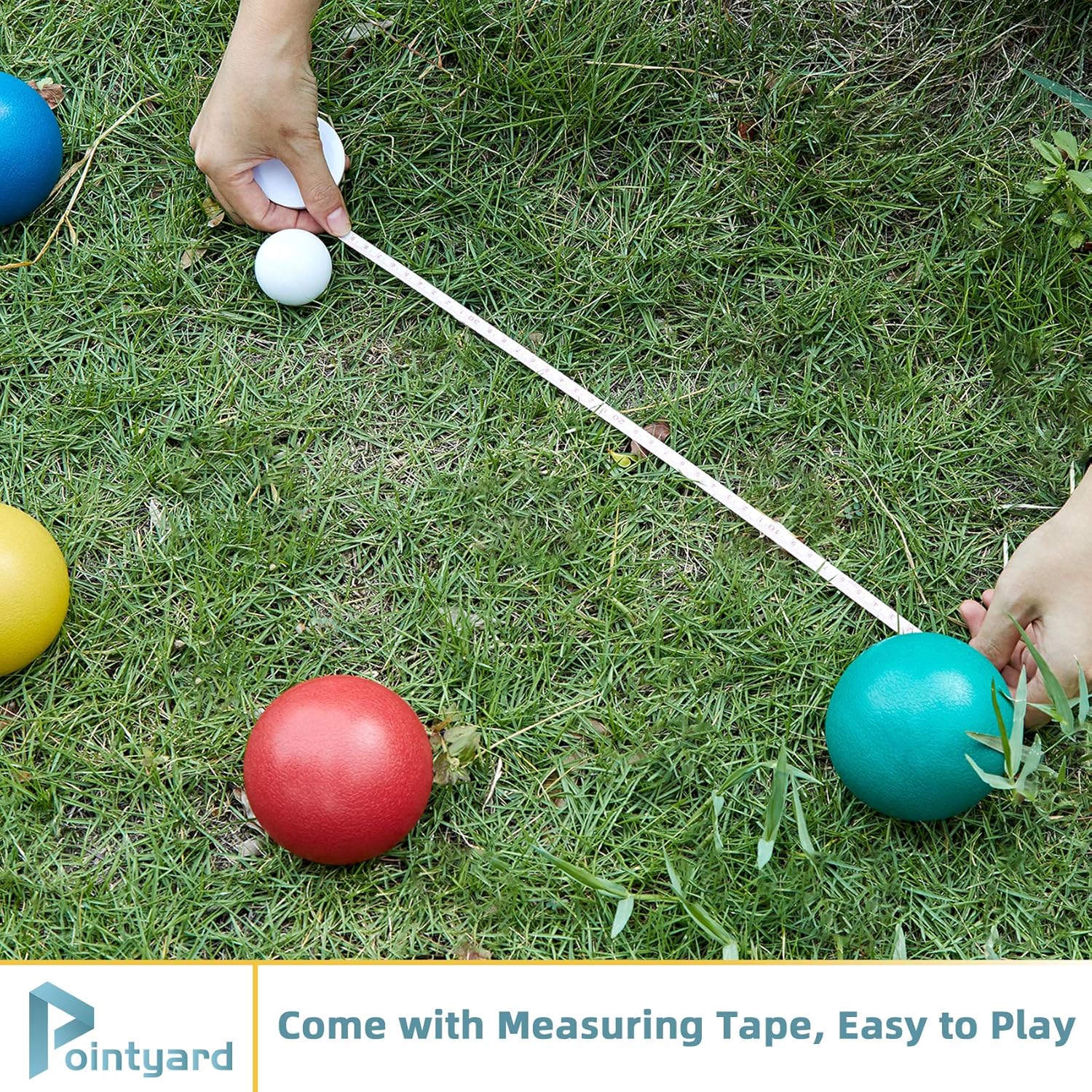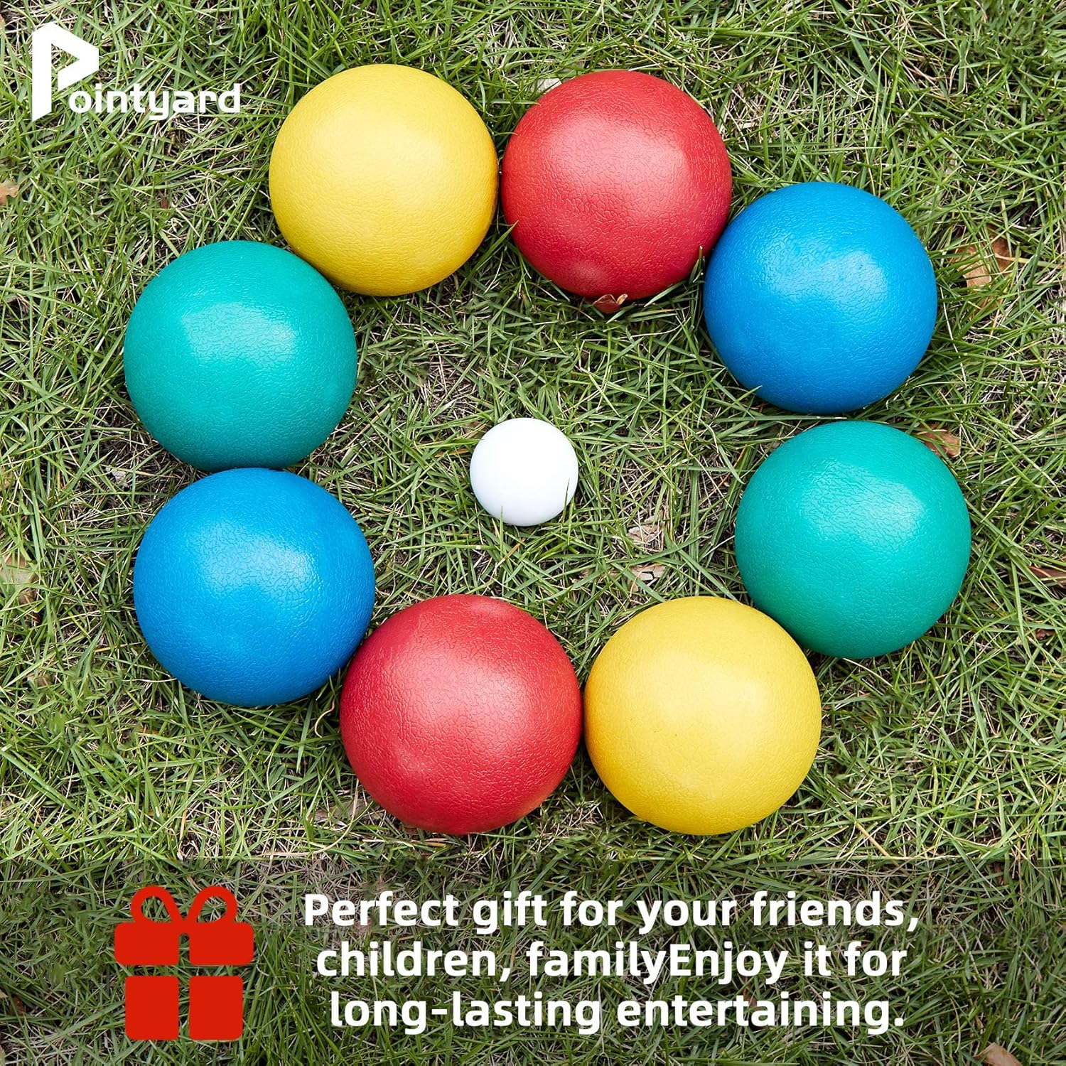 Pointyard 84mm Bocce Ball Set, Outdoor Games for Adults and Family, Backyard Ball Set with 8 PE Bocce Balls & 1 Pallino & Carry Bag & Measuring Tape for Teens Beginners