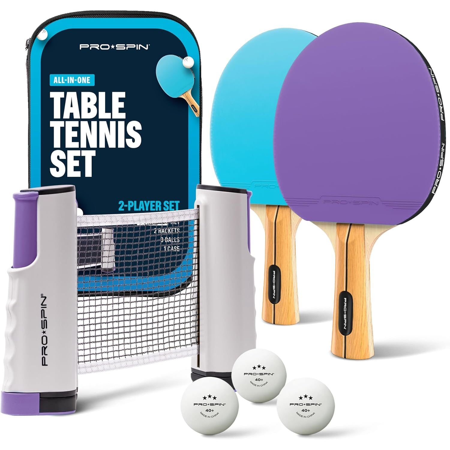 PRO SPIN All-in-One Ping Pong Set - Retractable Ping Pong Net for Any Table (72"), Ping Pong Paddles and Balls, Storage Case - Portable Table Tennis Family Games, Gifts for Boys & Girls