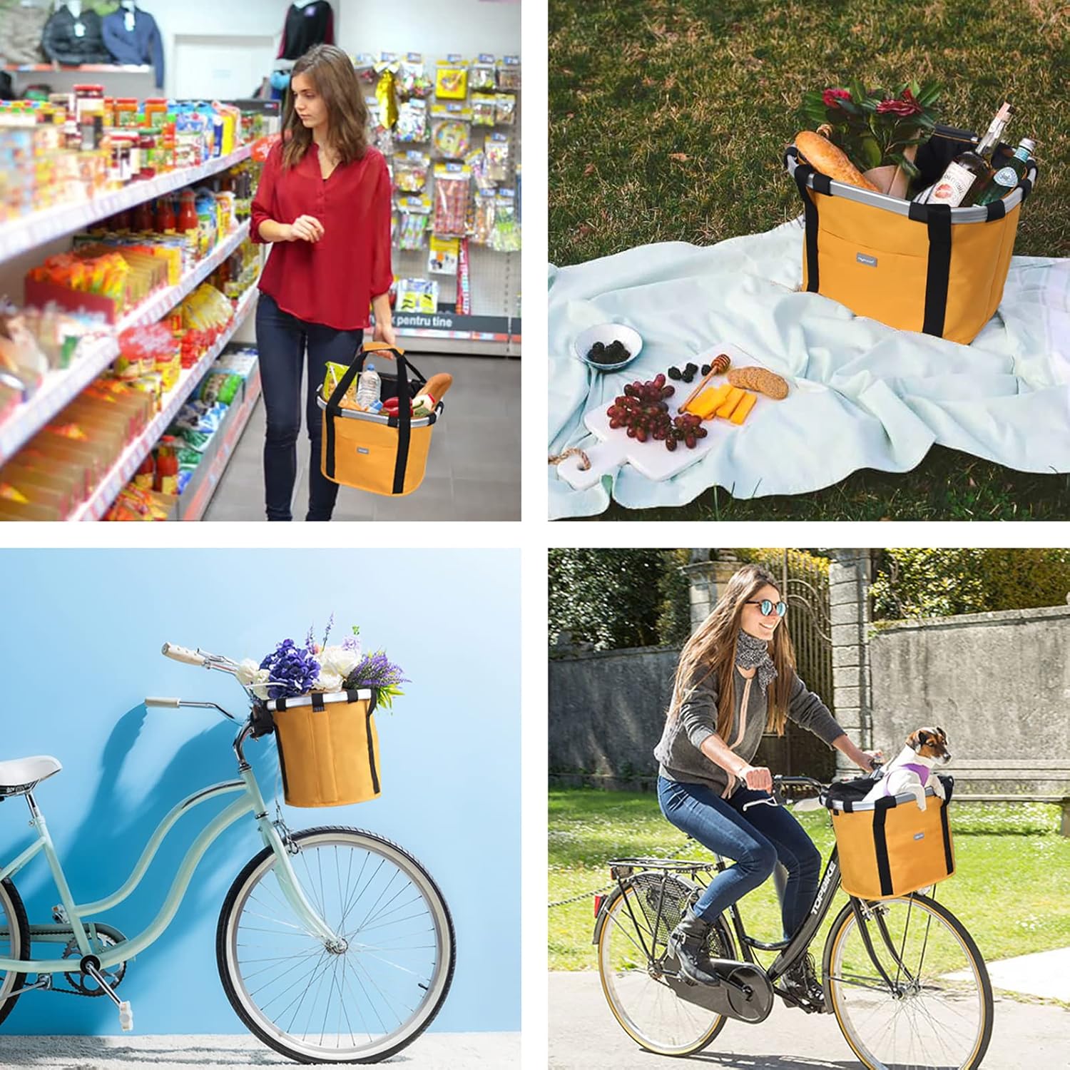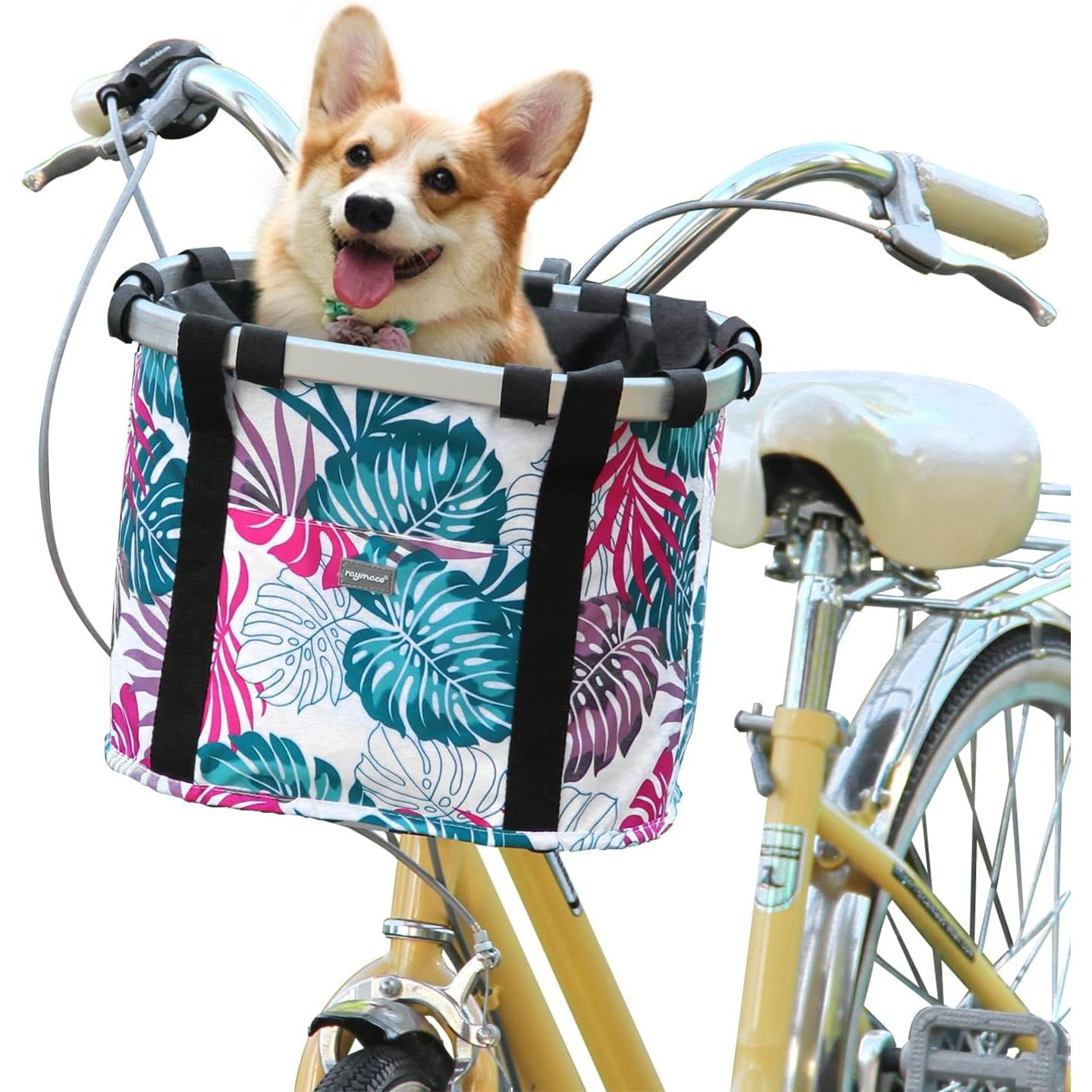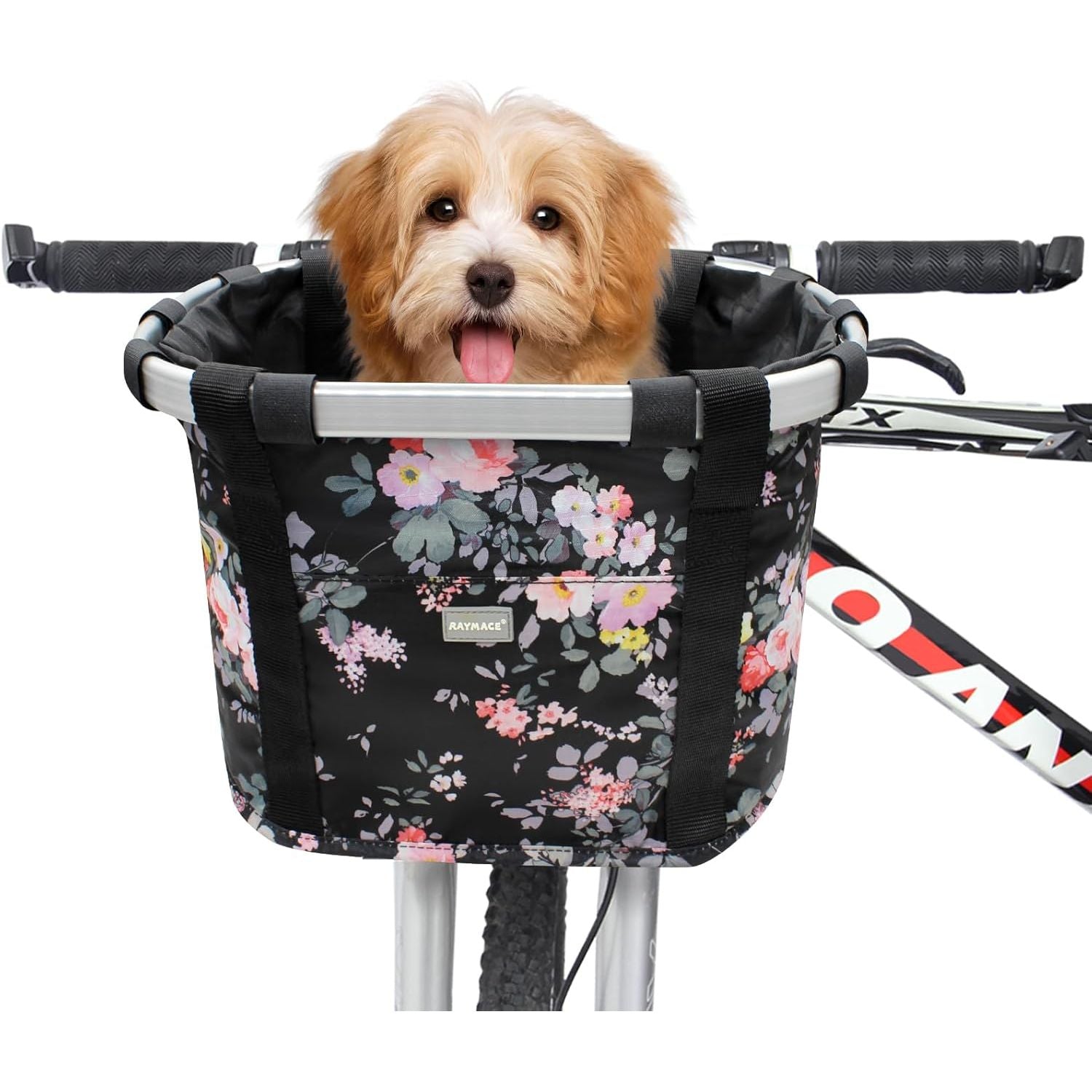 RAYMACE Bicycle Basket Dog Bike Handlebar Basket Front,Folding Detachable Quick Release Easy Install,Cycling Picnic Bag