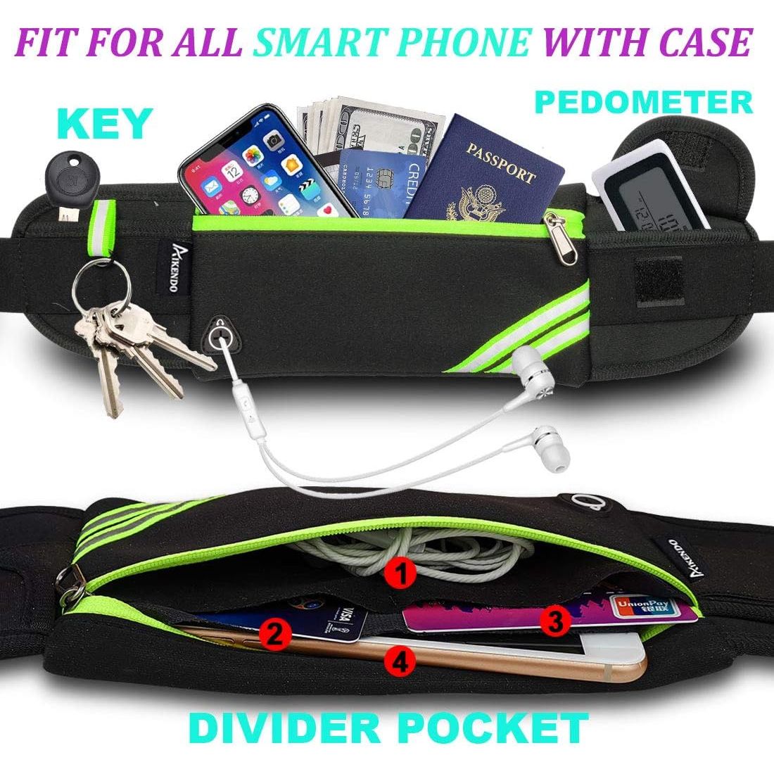 - 【Adjustable, Fits All Sizes】: You don't need to search for the right size of running waist band anymore. AIKENDO running waist pack Fits waist sizes from 27" to 44" with elastic and adjustable strap, the Cell phone holder for running will fit to all of your family members.