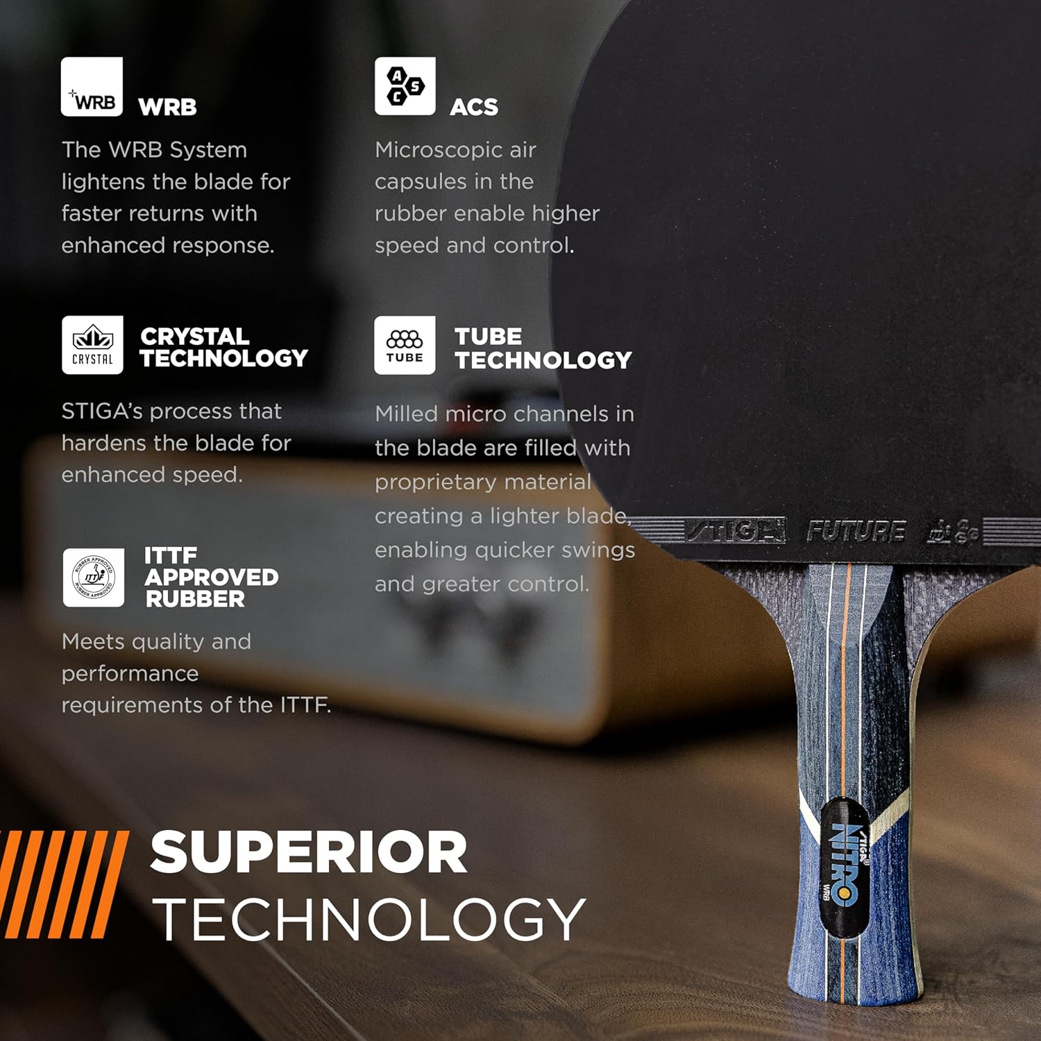 - SUPERIOR TECHNOLOGY – This racket unites STIGA's unique Tube Technology with its Crystal and WRB Technologies for a hardened, light blade with faster returns, more power, and extra sensitivity of touch