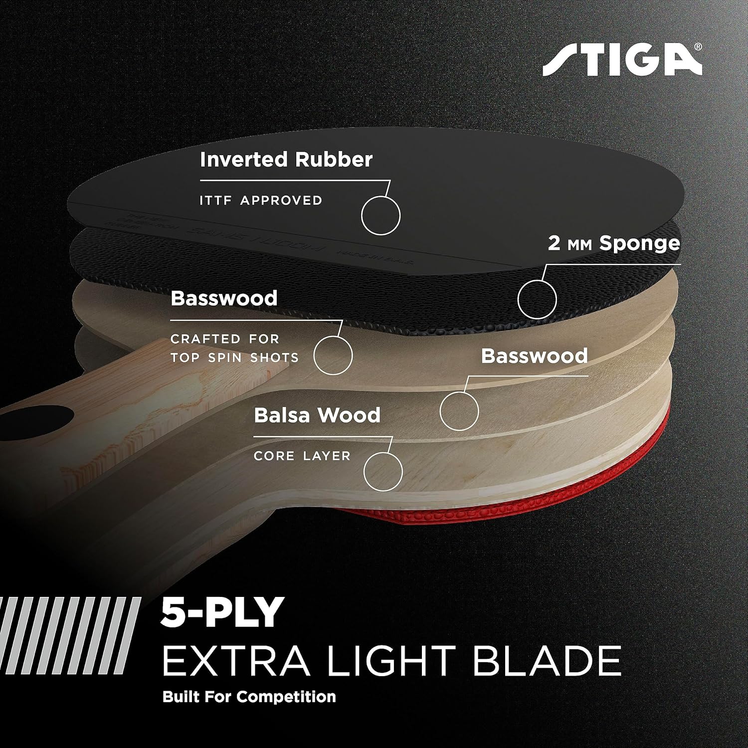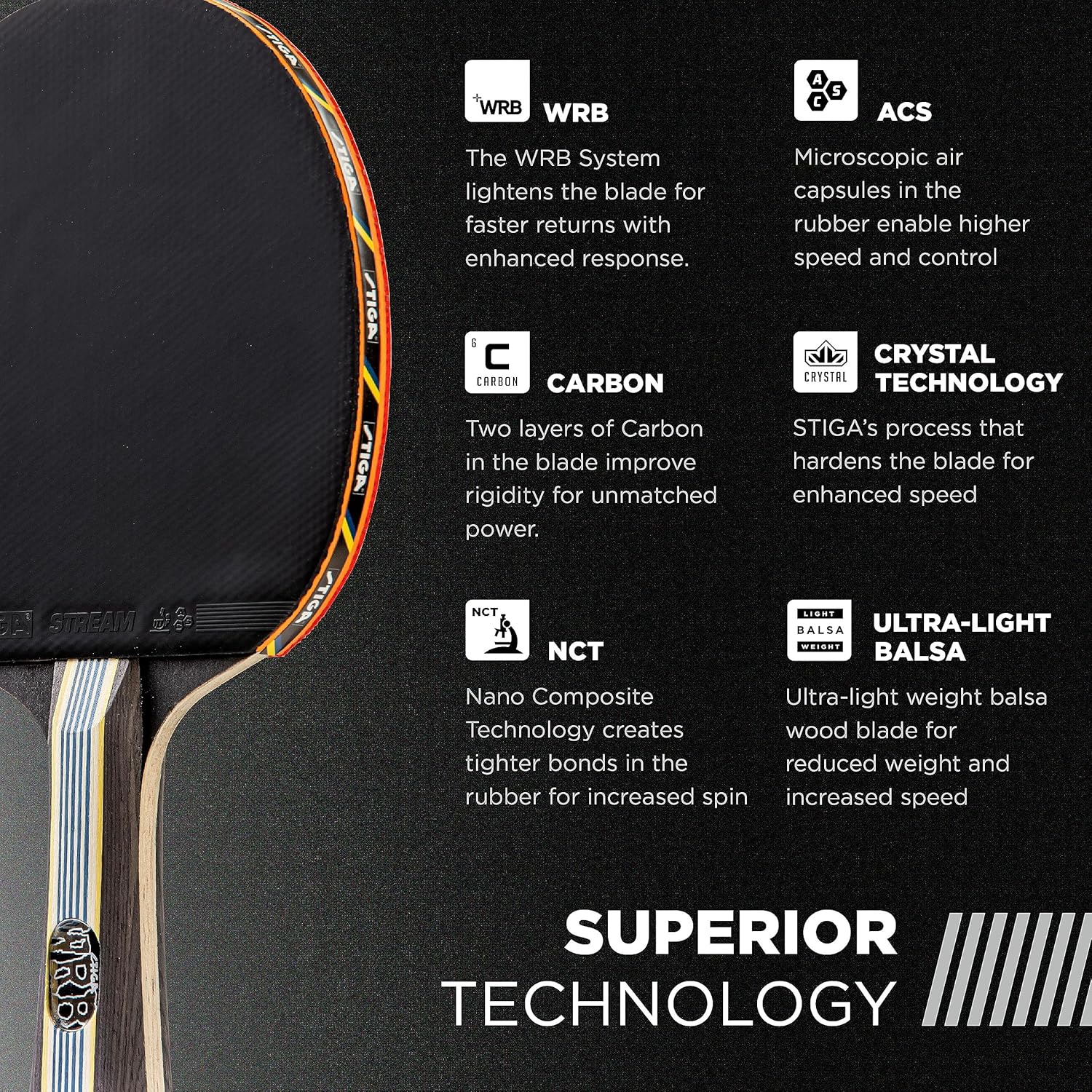 - ADVANCED TECHNOLOGY – STIGA's Crystal and WRB Technologies combine for a hardened, light blade that provides increased speed and optimal balance of weight, speed, and sensitivity
