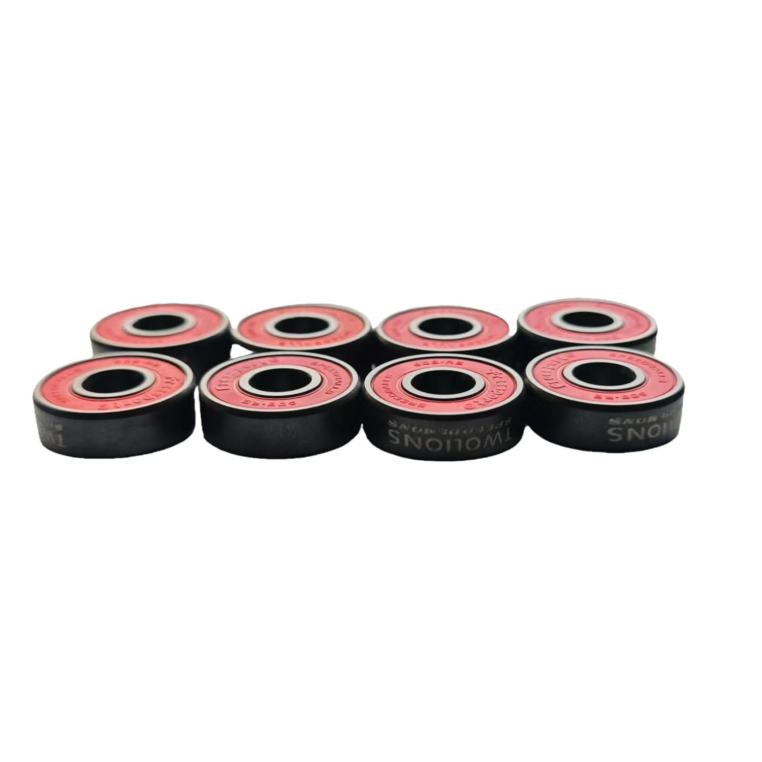 1. Hybrid Ceramic bearings,do not need Grease,it have special rustling sound,Super High Speed,Long Spin time. 2.Rolling elements:7 Black Ceramic Beads(Si3N4), High Temperature and Corrosion Resistance,Abrasion resistance,High Revs. 3.Size: 8 * 22 * 7 (Inner * Outer * Height) / Unit: mm 4.The Bearings have High Speed and High temperature resistance,But It Do not Suit For Extreme Sport , Like High iIntensity Jump. 5. Please Note:Freesport Speed Demons is a Series of Bearings which is under Twolions Brand. So the Bearings Rings will print "Freesport Speed Demons" on the bearings.So when you received the bearings with Freesport Print , it is a correct bearings .Not Wrong Bearings.