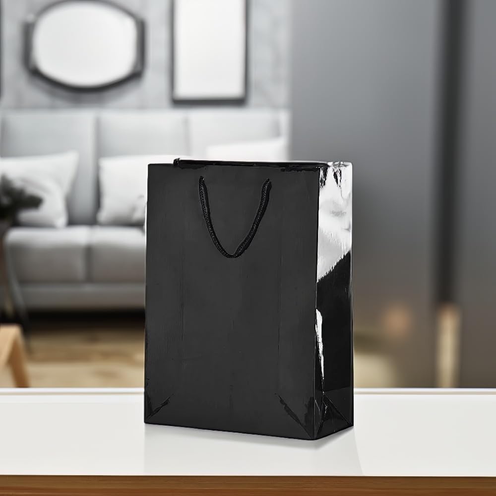 - Vibrant Solid Glossy Medium Bag - 9.5"H x 7.75"W x 4.5" (1 Pc.) - Sturdy, Eye-Catching & Eco-Friendly - Ideal for Events, Celebrations & Gifting, Black