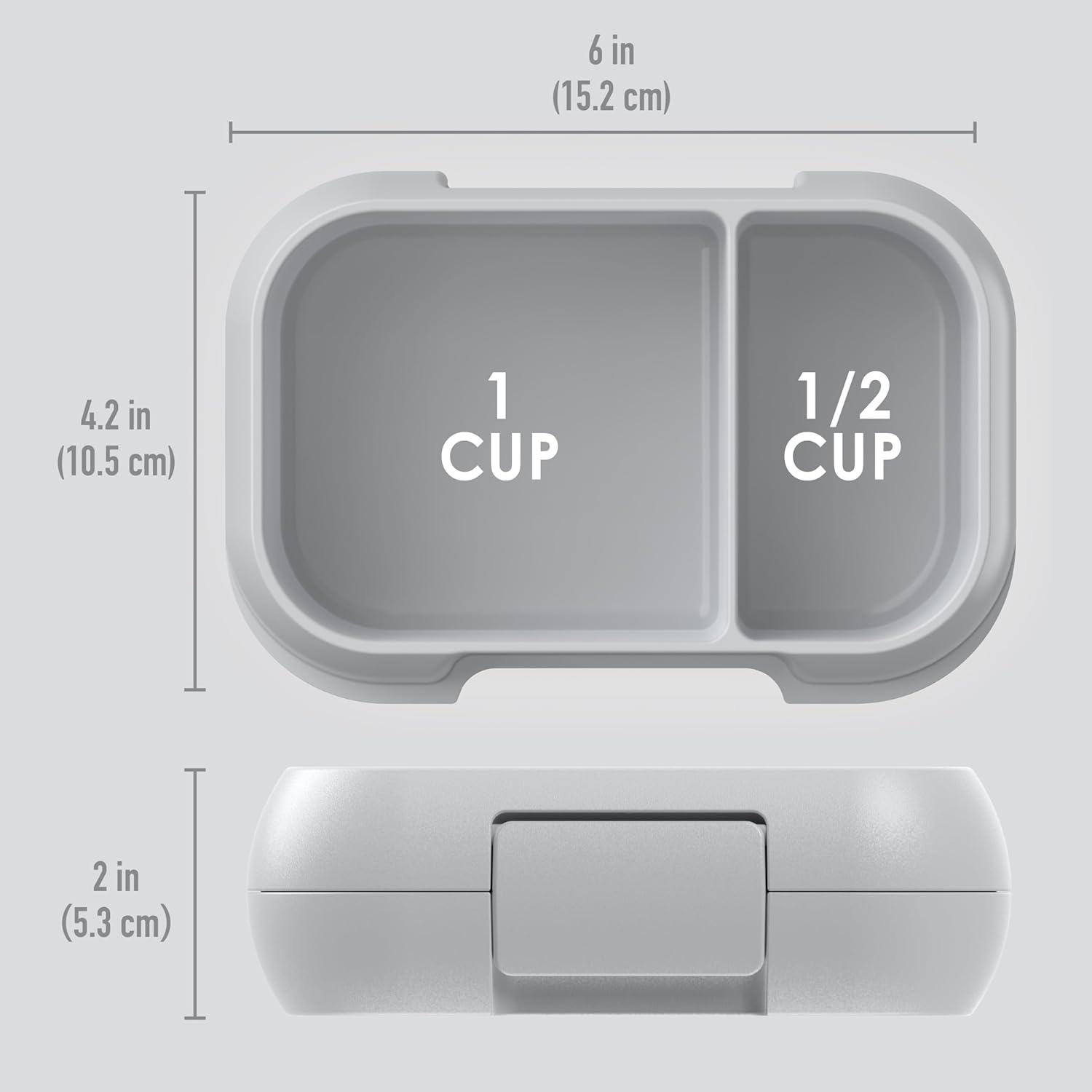 - Snack-Sized & Compact: Measuring 6" x 4.15" x 2.1", this bento-style container holds 1.5 cups (12 oz) with two perfectly portioned compartments to keep kids’ snacks fresh, separate, and mess-free on the go.