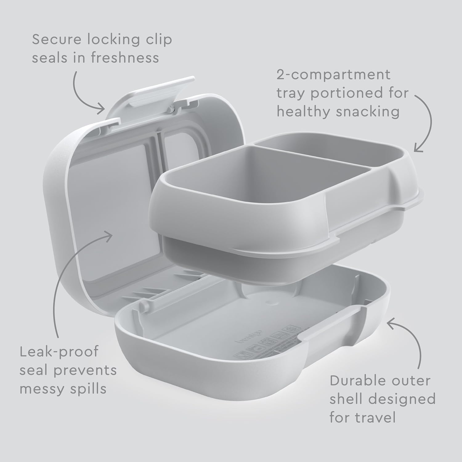 - Bentgo Kids Snack - 2 Compartment Leak-Proof Bento Box Container for Snacks and Small Meals, Easy-Open Latch, Dishwasher Safe, BPA-Free for School, Daycare, & Sports - Ideal for Ages 3+ (Gray)