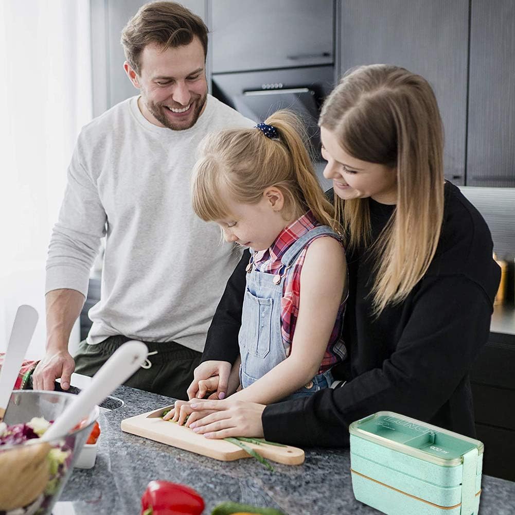 - Iteryn Bento Box Lunch Box, 3-In-1 Compartment Lunch Containers - Wheat Straw, Leakproof Stackable Bento Lunch Box for Meal Prep