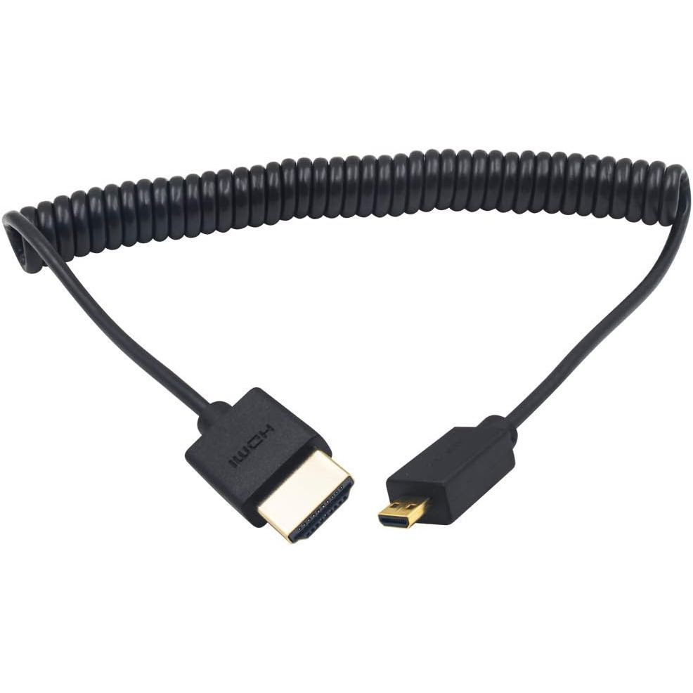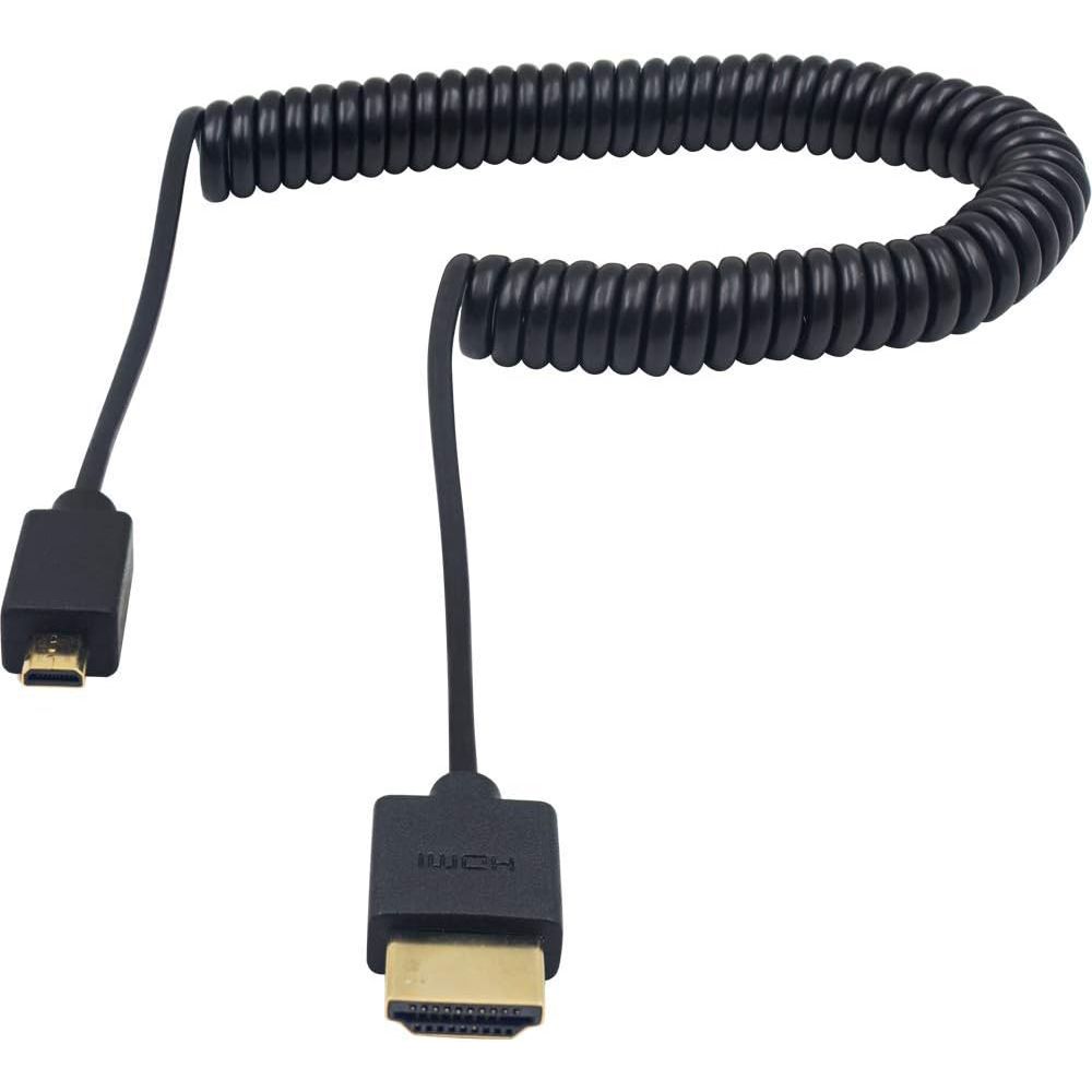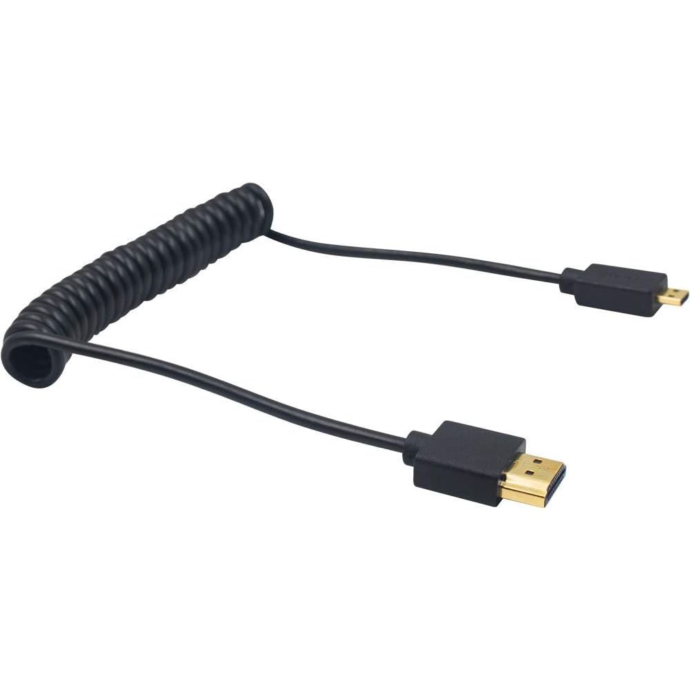 - [Ultra Thin coiled micro HDMI to HDMI cable] Micro HDMI male to HDMI male coiled cable, normally stretches to 80 cm. Short HDMI to micro HDMI 2.0 cable can smoothly extend from 1 foot to 4 feet. The flexible/extendable coil design can meet your different distance requirements. The micro HDMI coiled spiral cable can be as long as 1.2 meters at most.
