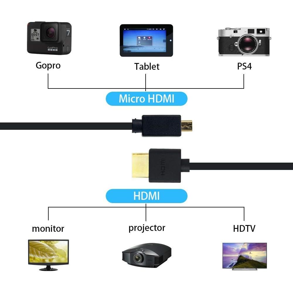 - Micro HDMI to HDMI cable is widely compatible: cameras, Raspberry Pi 4, Raspberry Pi 5, portable displays, video capture cards, GoPro Hero 7, Hero 6, Hero 5, Hero 4, Hero 3, Hero 3+, GoPro Hero 2018, Nikon B500, IdeaPad Miix 300 tablet, ThinkPad 10 8, Yoga 2 Pro 3 Ultrabook, Yoga 700 710, 710s, ASUS ZenBook UX305UA, Transformer Mini T102HA (Please note: This Micro HDMI cable is not compatible with Samsung phones or tablets with Micro USB ports)